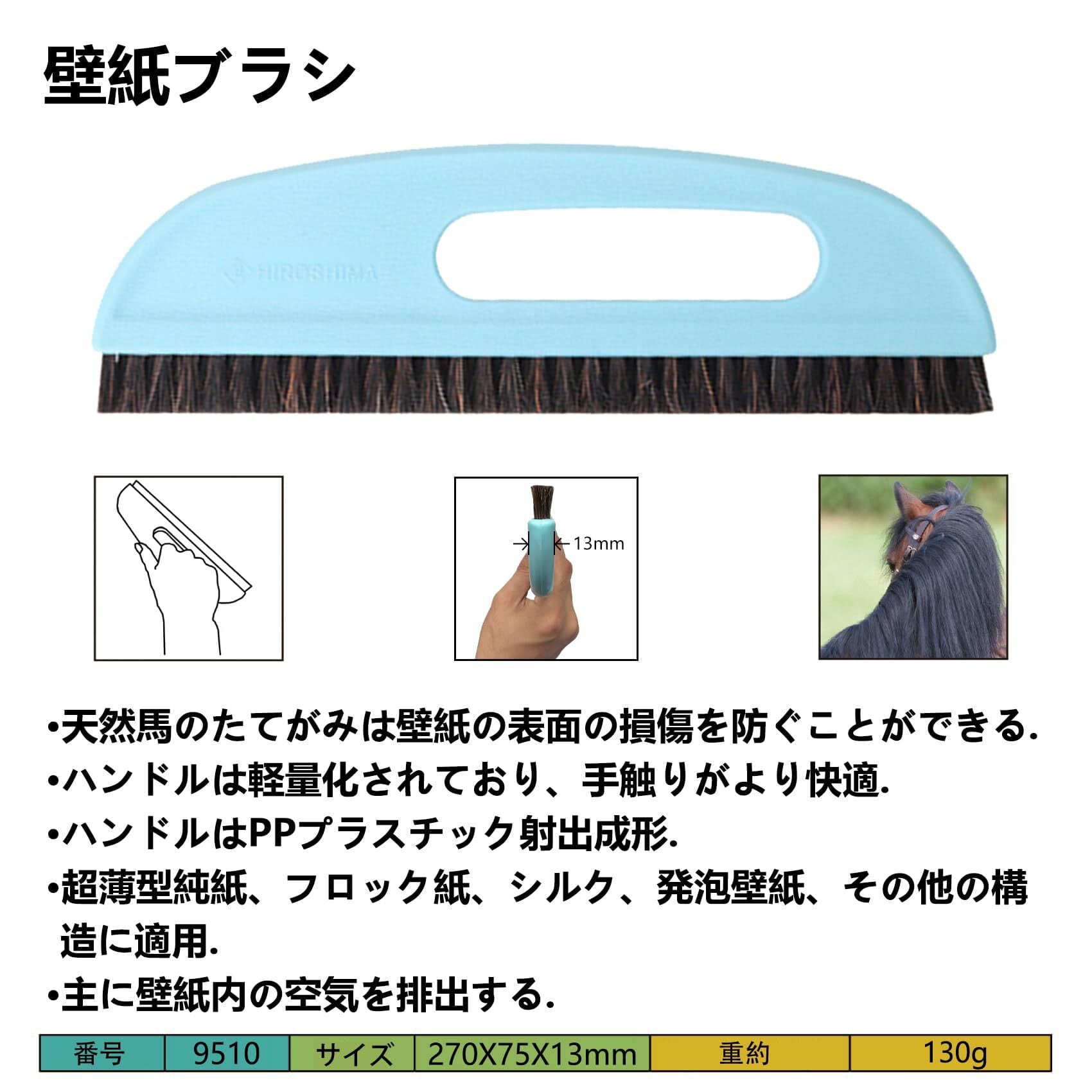 刷毛 ブラシ 壁紙用ブラシ軽量ニ行プラシ 刷毛 壁紙ブラシ 壁紙張り替え道具 壁紙工事用 PP+馬のたてがみ二行毛長16mm青 (9510壁紙ブラシ 青)