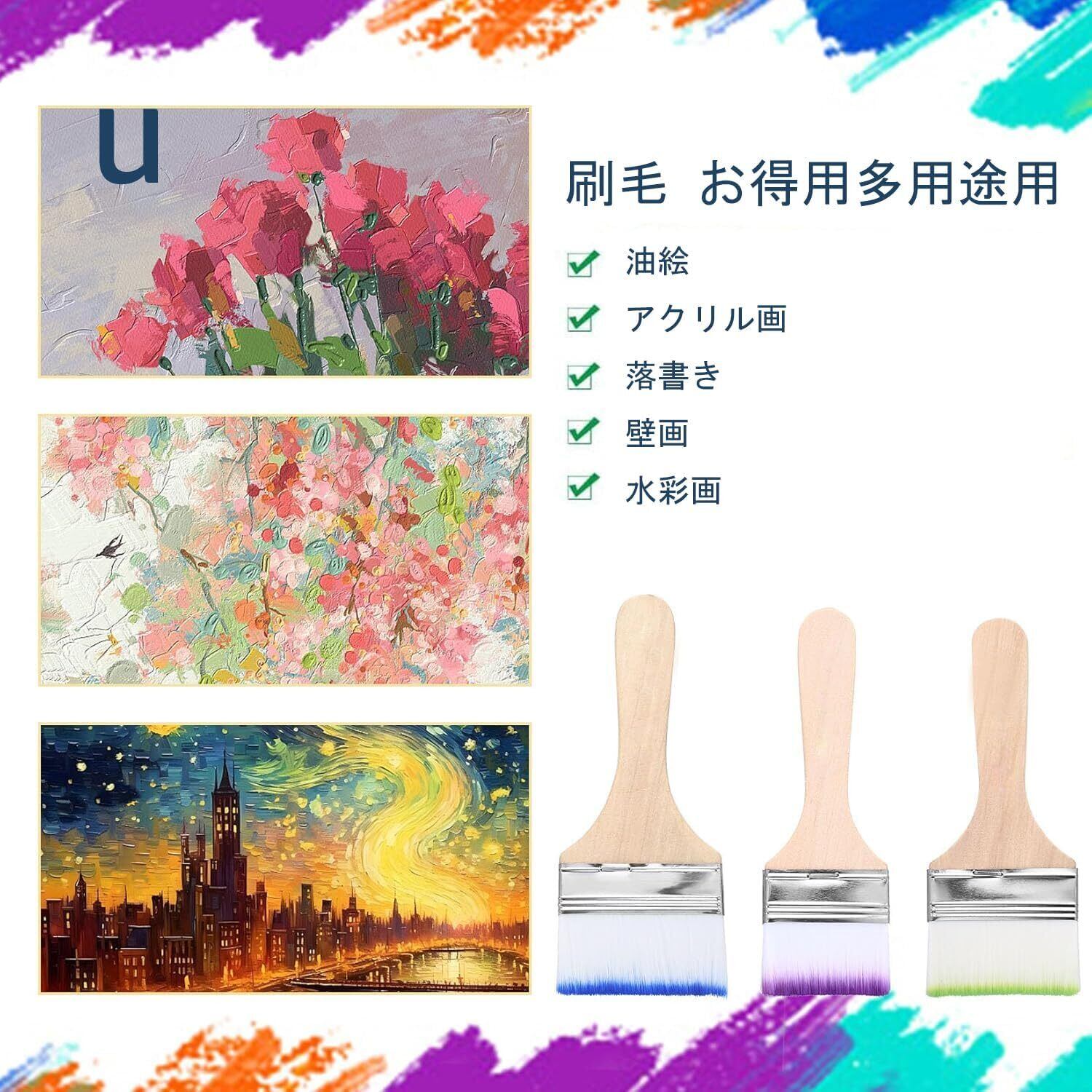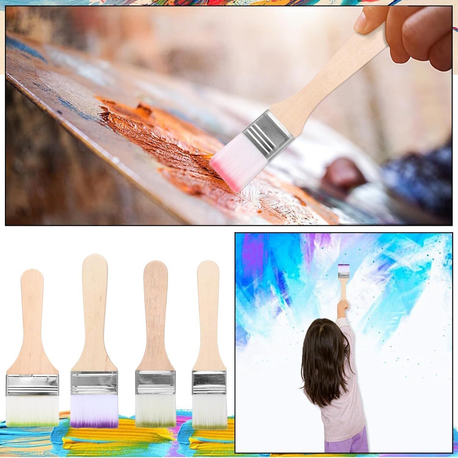 このペイントブラシセットは、ほとんどのペイント、ステイン、ワニス、アクリル、ジェッソパウダーに使用でき、壁、装飾、キャビネット、門、フェンス、デッキ、ステイン、DIY ペイントなどに適しています。