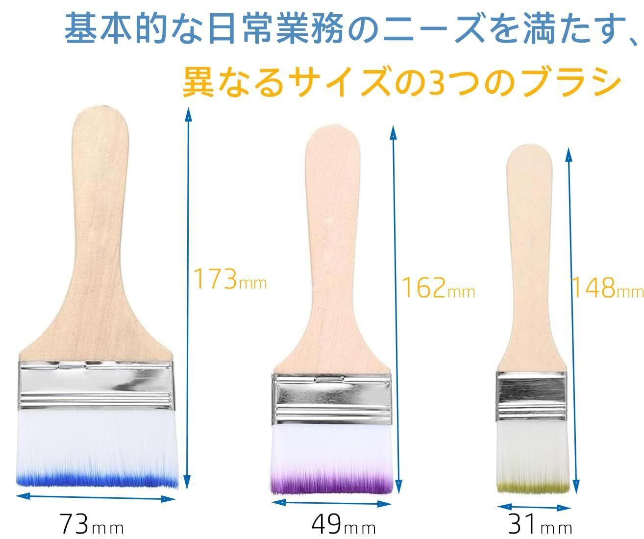 DeeAWai 刷毛 3本セット 31mm 49mm 73mm お得用多用途用 水性塗料 油性塗料 兼用, 白