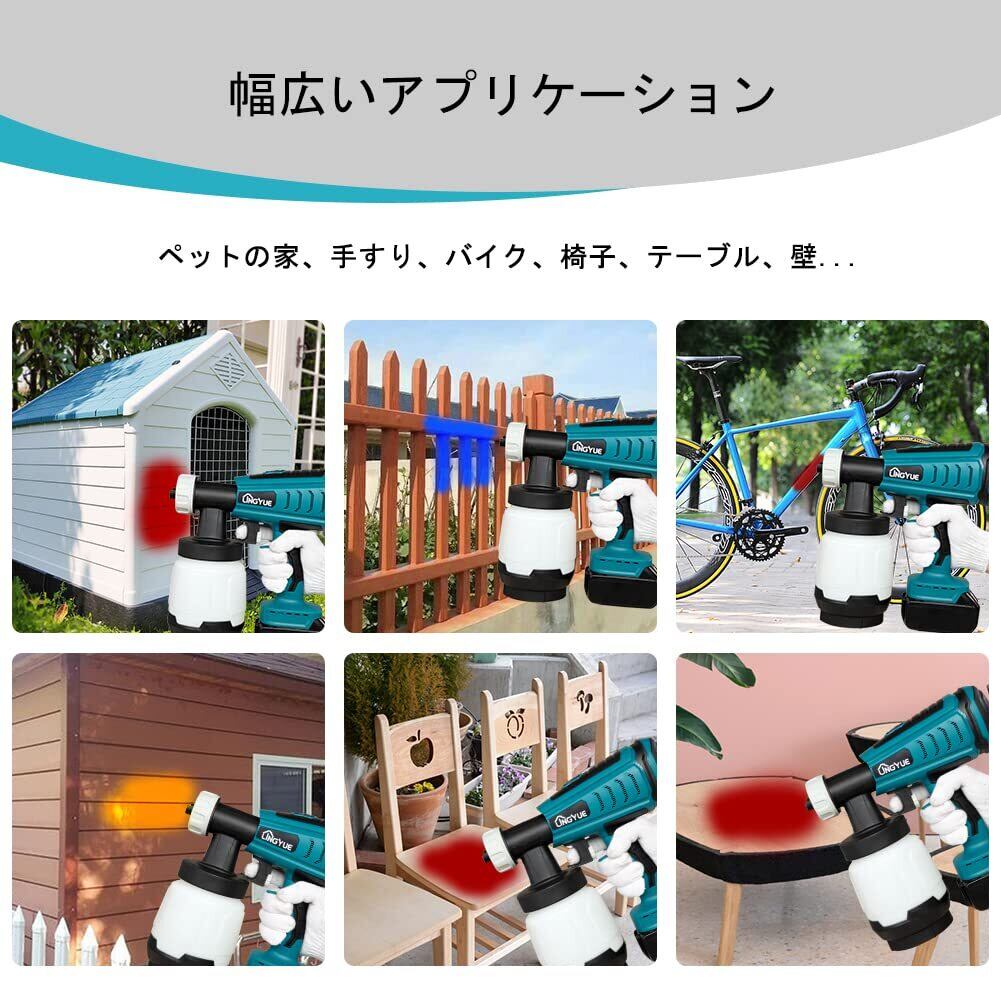 【多目的な用途】- このコードレススプレーガンは電源コードの制約から解放され、効率的かつ制約のない操作が可能です。キャビネット、車両、壁、家具、手すり、ホルムアルデヒドの浄化、フェンス、屋根、クラフト、木製品など、屋内外の幅広いプロジェクトに使用できます。