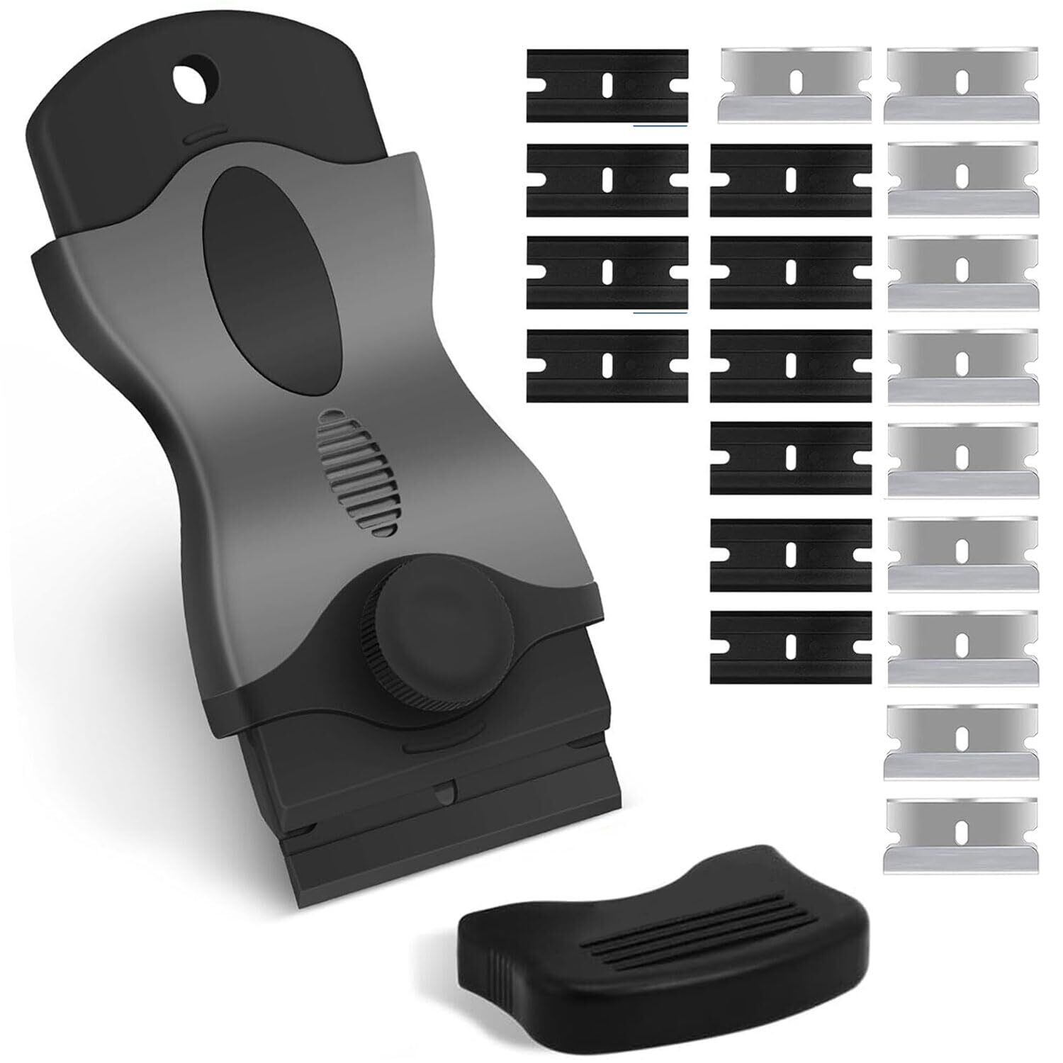 スクレーパー シール剥がし シングルエンドスペード (プラスチック刃10枚 金属刃10枚 安全スクレーパー)ガラス汚れ落とし ステッカー/シール/ラベル/接着剤剥がし 染み抜き クリーニング (グレー)
