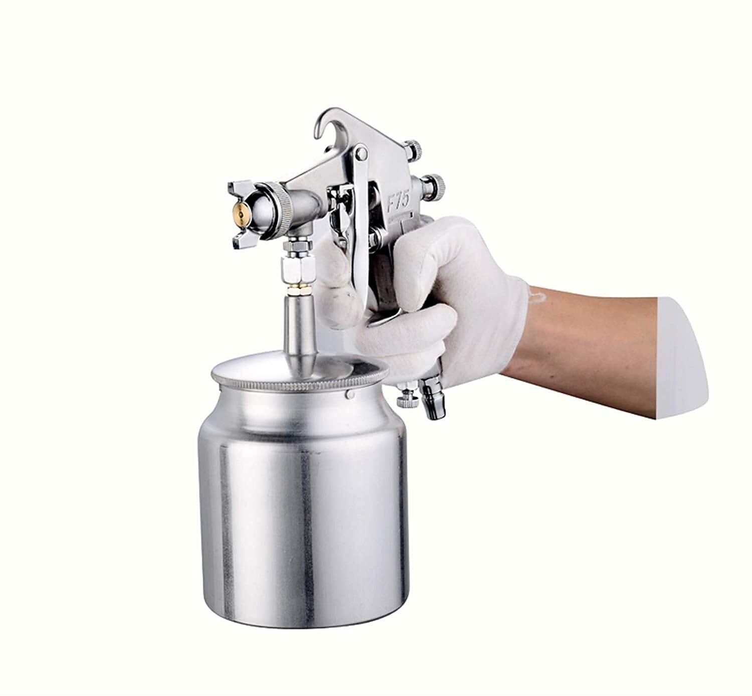 作業のしやすい、重心が下にくる吸上式(下壺式)エアースプレーガンです。作業効率UP!