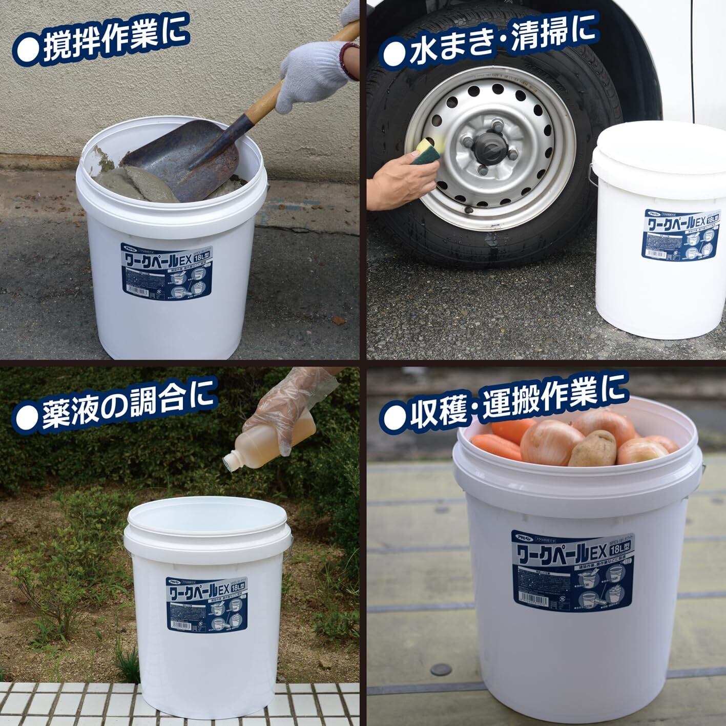 建築材料の攪拌作業、農薬などの薬剤の調合、水まきや清掃作業、農作物や資材の収穫・運搬作業に適しています。