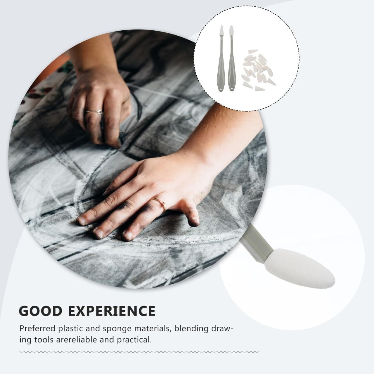 グッズバッグの詰め物 - スケッチワイプのハンドルは滑らかで、スポンジパッドは取り付けと取り外しが簡単で、ブレンド用の紙の切り株も付いています