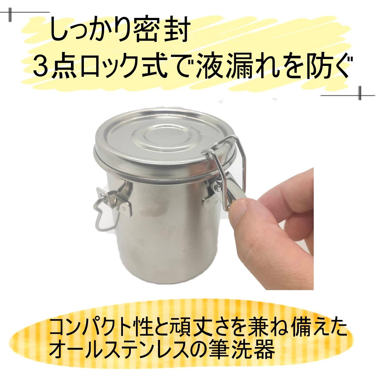 【3点ロック式】 筆洗器 密閉型 筆洗い 油絵 バケツ ステンレス コンパクト 【coco plazaオリジナルパッケージ】