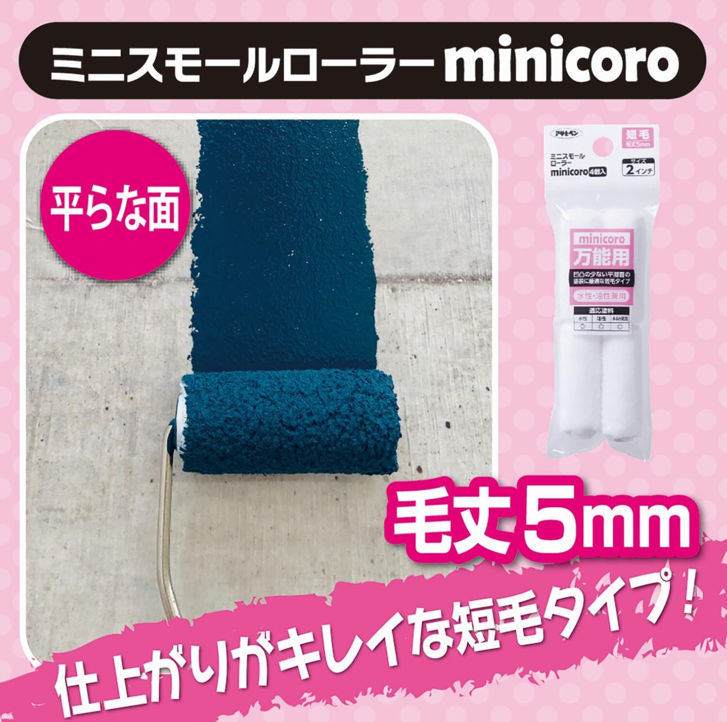 アサヒペン ペイント用 ミニスモールローラーminicoro(短毛) 1インチ MCS-1 平滑面向け マイクロファイバー 極細繊維 狭い所も塗りやすい 水性塗料 油性塗料 兼用