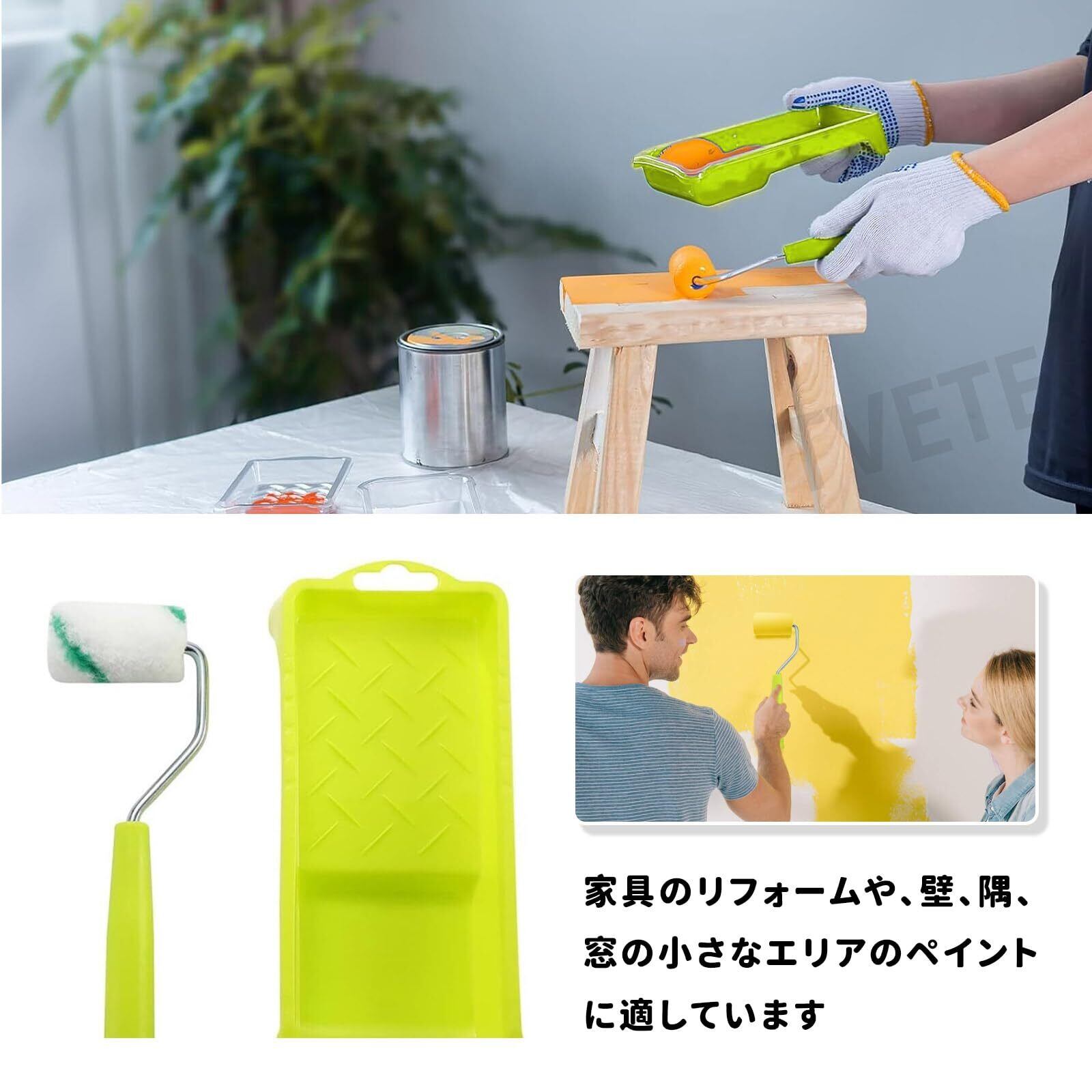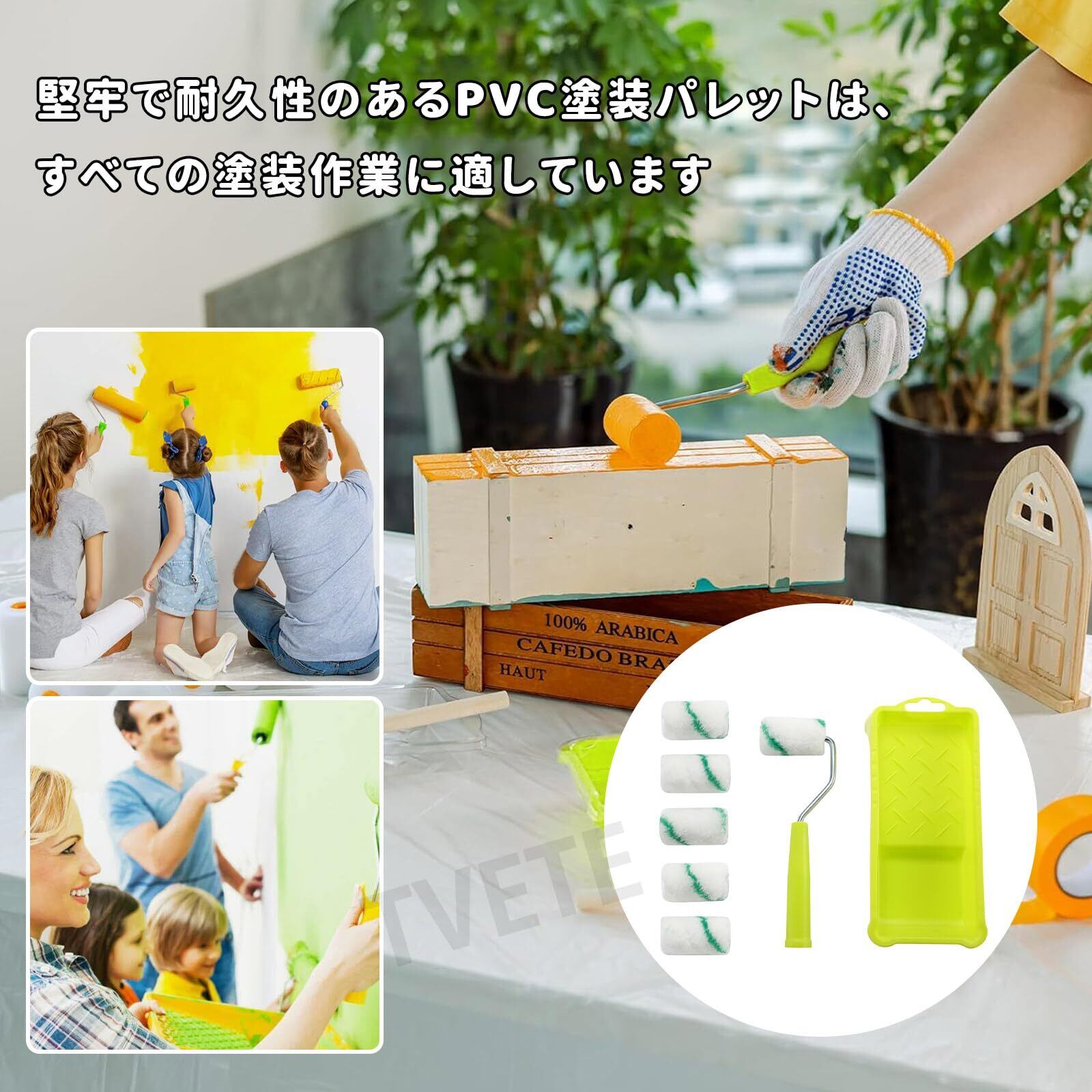 TVETE ミニローラー 2インチ 塗装セット ポリエステル ローラー ペイントトレイ付き ポリエステル製 ペンキ ローラー ミニ ペイント ローラー ブラシ セット 壁 塗装 ローラー ストリート落書き (緑)