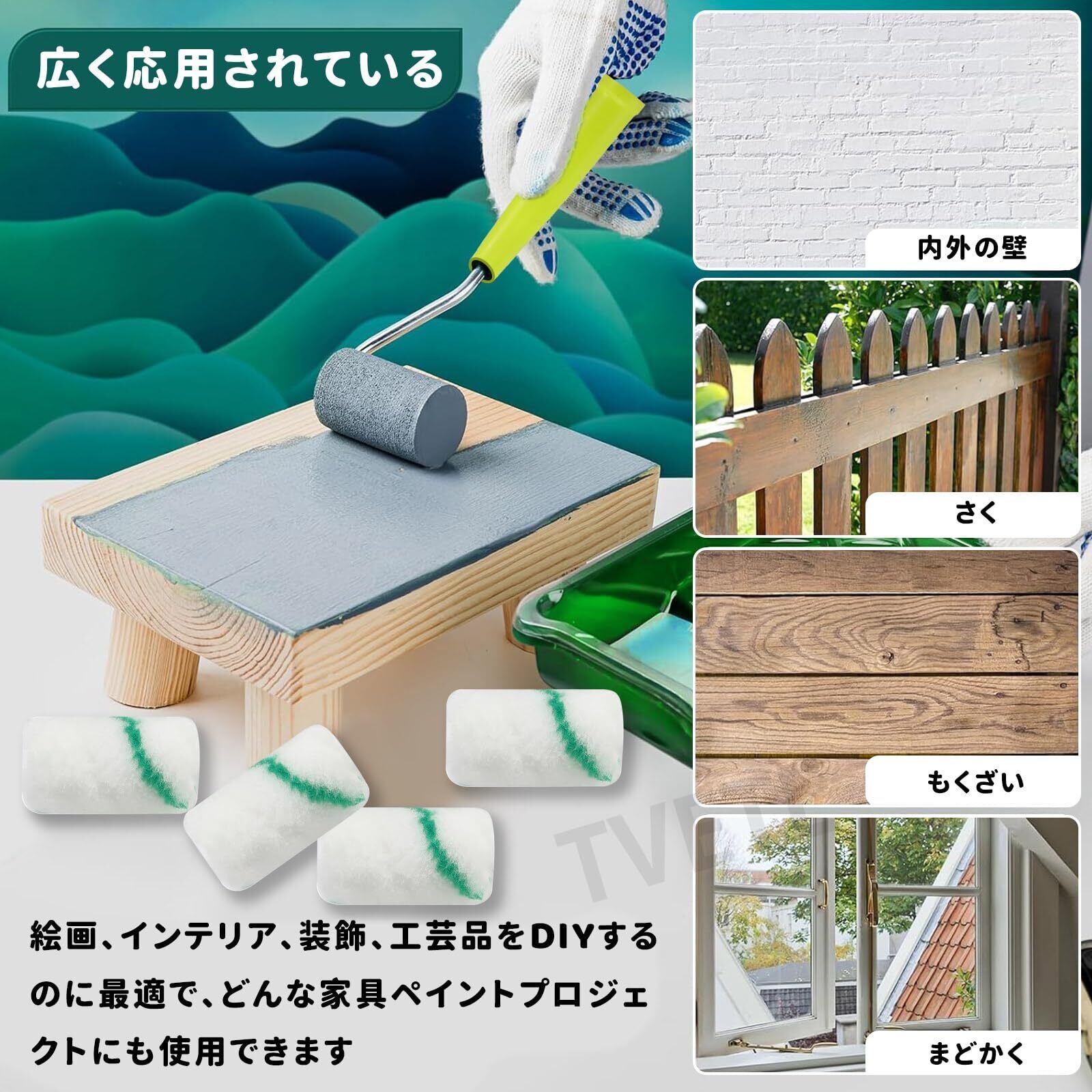 【製品内容】:ミニローラー塗装セットには、スリーブ6枚、ペイントトレイ、小さなローラーハンドルの合計8個が含まれます。ハンドルはプラスチックと亜鉛メッキ鋼製で、サイズは約5.7×180mmです。家具の改修、壁の補修、木製品の塗装、街路の落書きなどの小規模な着色・再塗装作業に適しています。