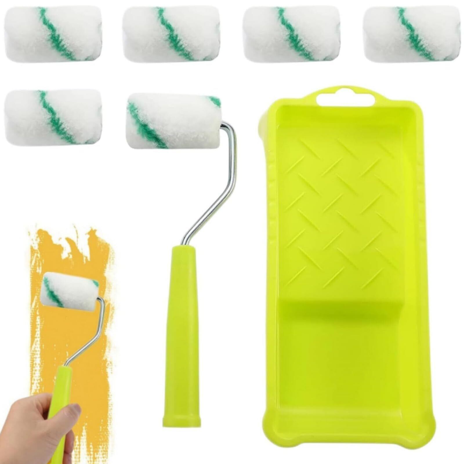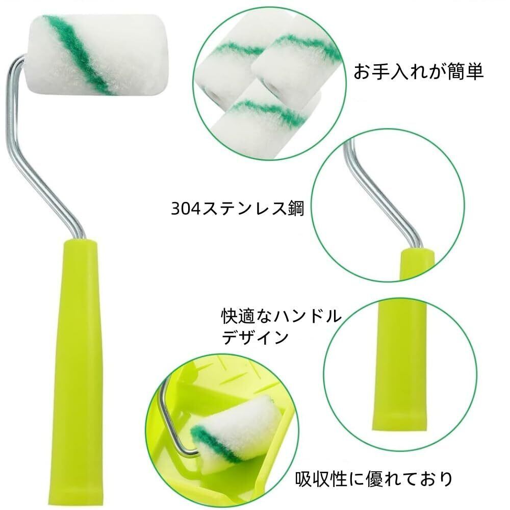 【適用】軽いテクスチャの表面まで滑らかにするためのペイントロールを備えた小型のペイントロールセット。この小型塗料ロールはすべてのラテックス塗料とラテックス塗料に適しており、壁塗料にも適している。