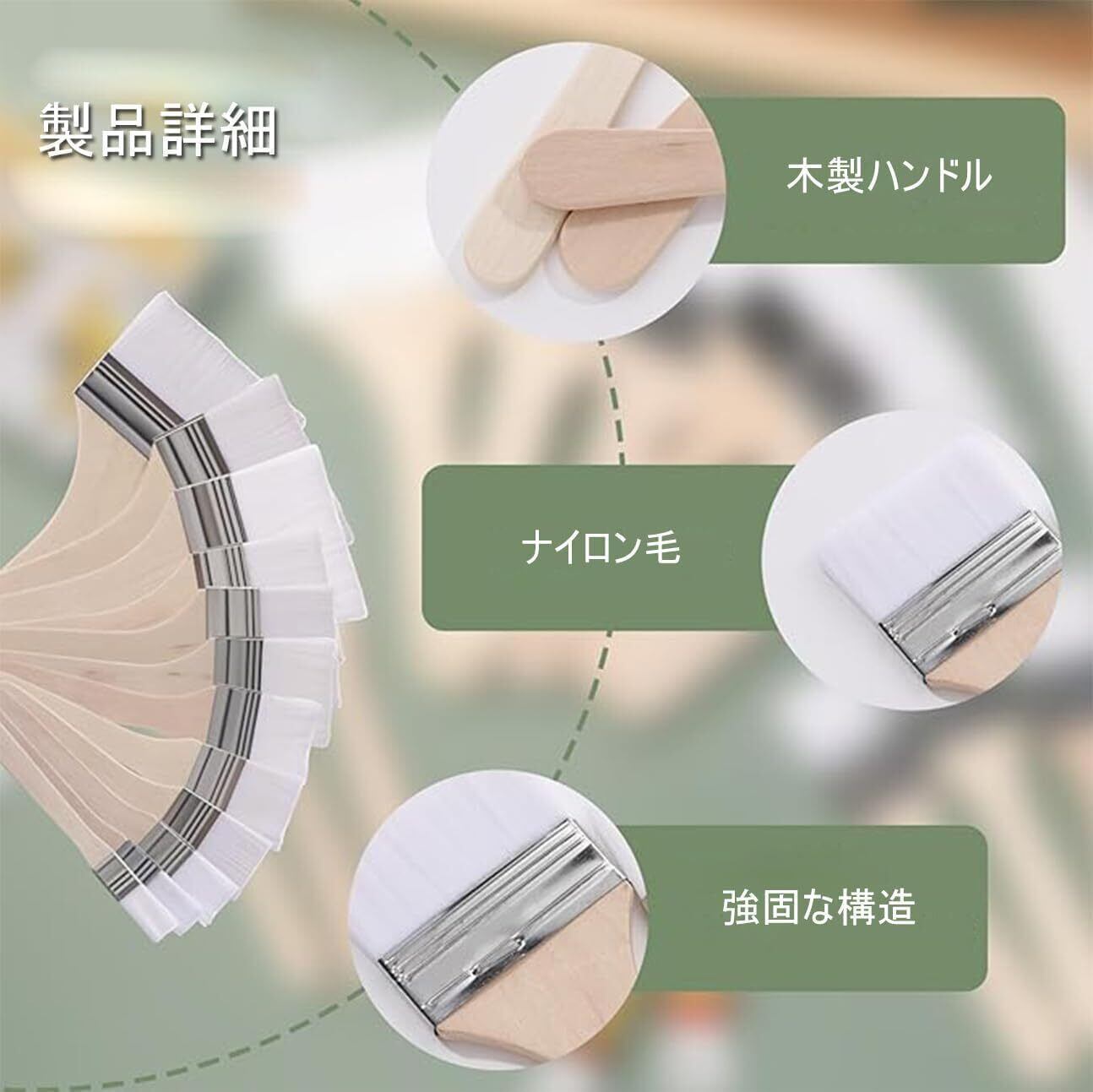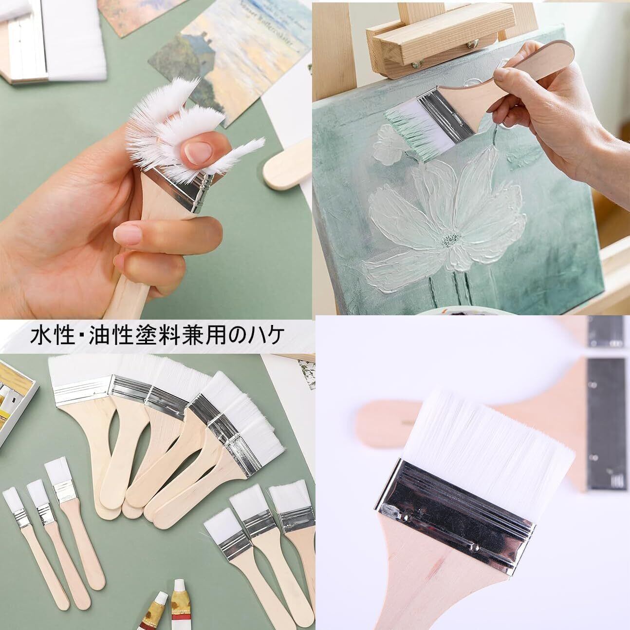 このペイントブラシセットは、ほとんどのペイント、ステイン、ワニス、アクリル、ジェッソパウダーに使用でき、壁、装飾、キャビネット、門、フェンス、デッキ、ステイン、DIY ペイントなどに適しています。