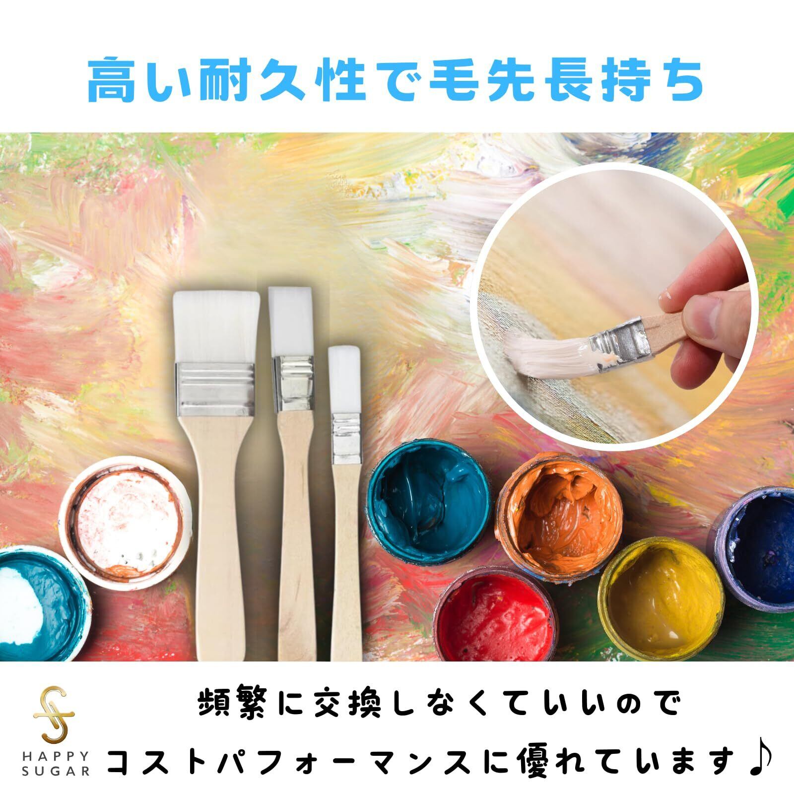 HAPPY SUGAR ペイントブラシ 筆 絵筆 平筆 画材筆 ハケ 刷毛 化粧筆 水彩筆 入れ ペンキ ブラシ ペイントブラシ 絵の具 塗装 写経 水墨画 (1.5cm20本)