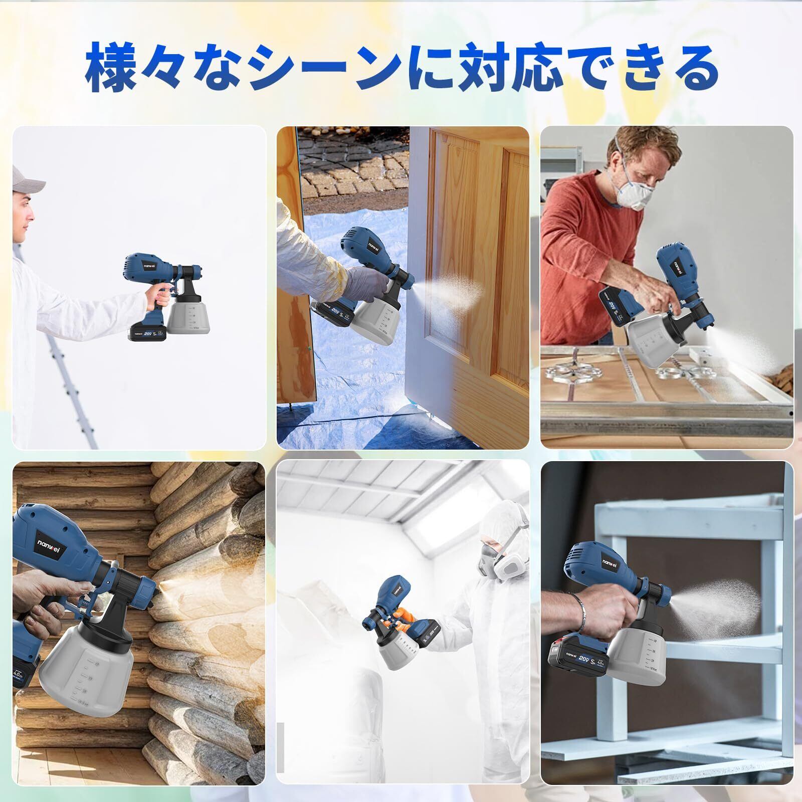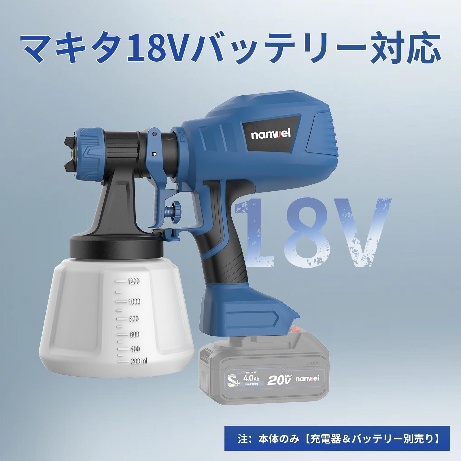 【2025新型】NANWEI コードレススプレーガン マキタ18Vバッテリー対応 電動スプレーガン 充電式塗装ガン 1200ml大容量塗装機 水性油性塗料対応 噴射量調節可能 三つの吹き付けパターン 4種類のノズル (本体のみ)