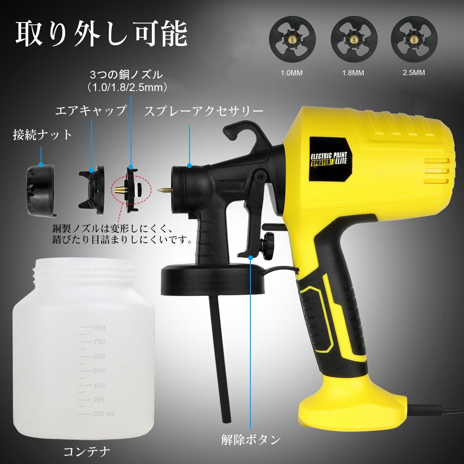電動 塗装機 家庭用 塗装 スプレー ガン 電動ガン スプレー機 電気エアブラシ 塗料 ペインター 800ml塗料ポット 3つの銅ノズル 3つのスプレーパターン 漏斗 ブラシ 洗浄針付き DIY 吹付