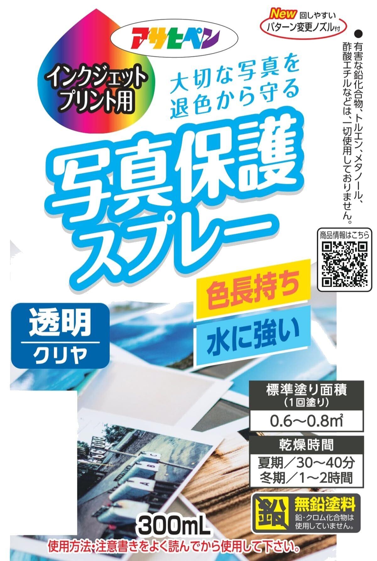 アサヒペン インクジェット写真用保護スプレー 300ml 透明 クリヤ 保護 スプレー 1回塗り 写真 大切な写真を退色から守る ガス抜きキャップ付き 日本製