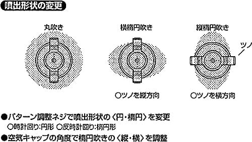 パターン調節ネジで噴出形状(円・楕円)を変更できる