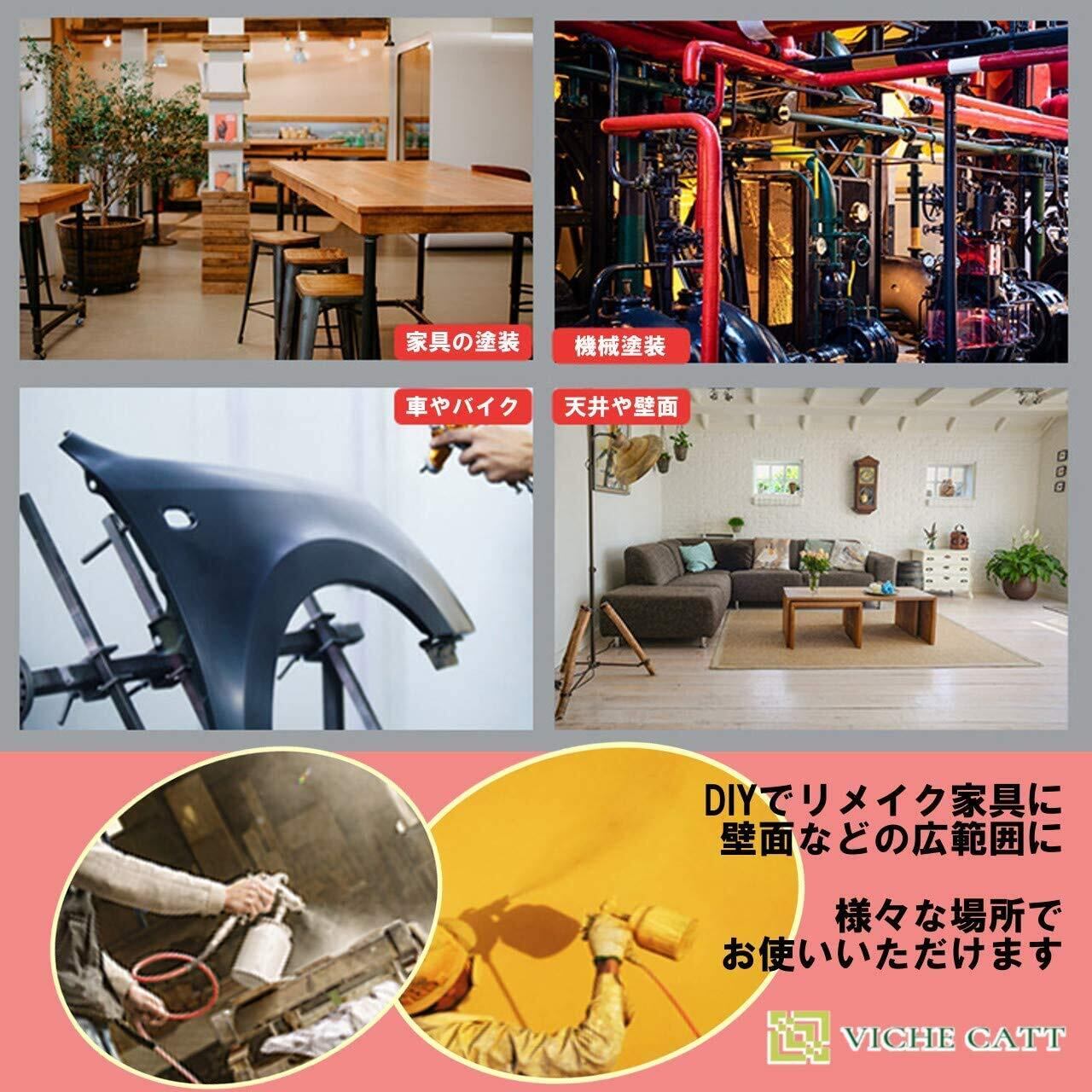 高品質のアルミ合金で作られており、頑丈で壊れにくく、安心して使用出来ます。 吹付圧:0.3~0.68Mpa 吹付距離:15~20cmタンク容量:1000ml 噴霧量:180~200L/min 重量:本体440g (エアーコンプレッサーは別途ご用意ください)