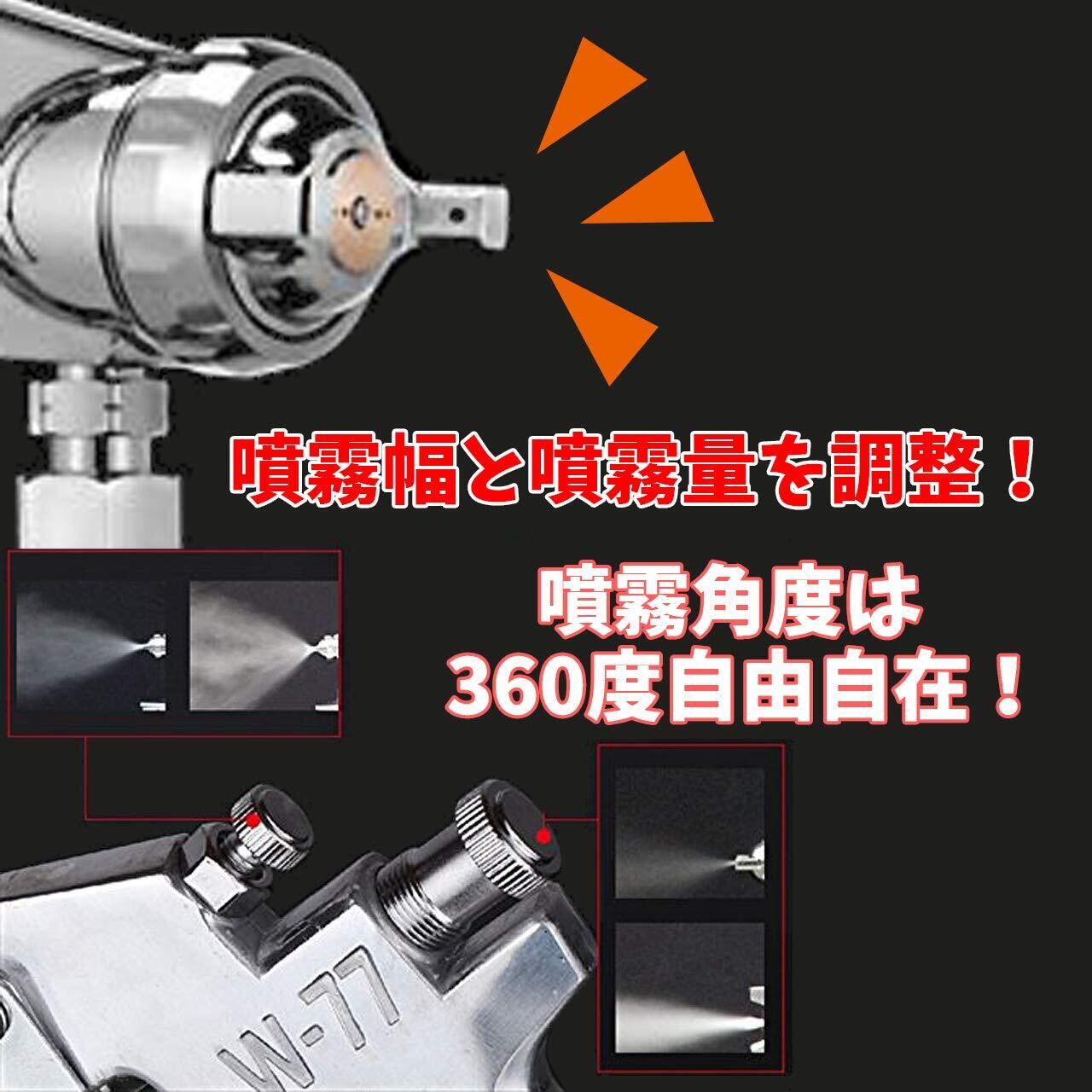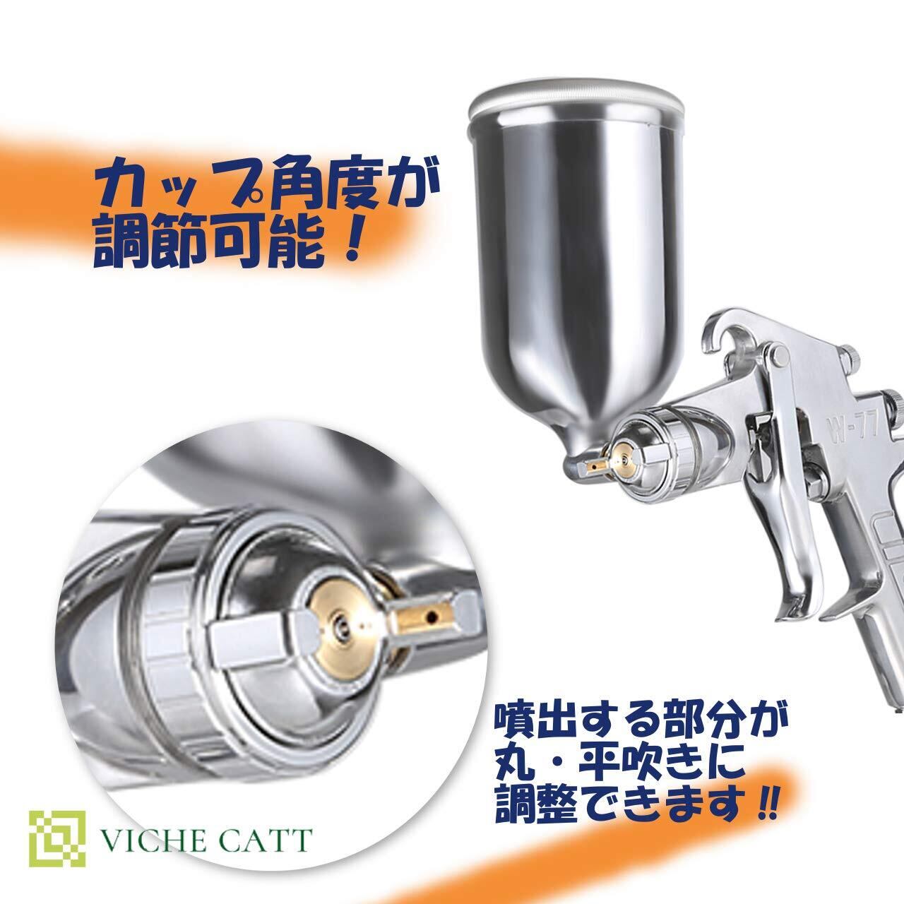 VICHE CATT エアー ペイント スプレーガン 吸上式 W-77 重力式 口径 2.0 2.5 3.0 mm タンク容量 400ml 上壺式 ステンレス鋼 塗装 工具 (2.0口径) | KSショップ