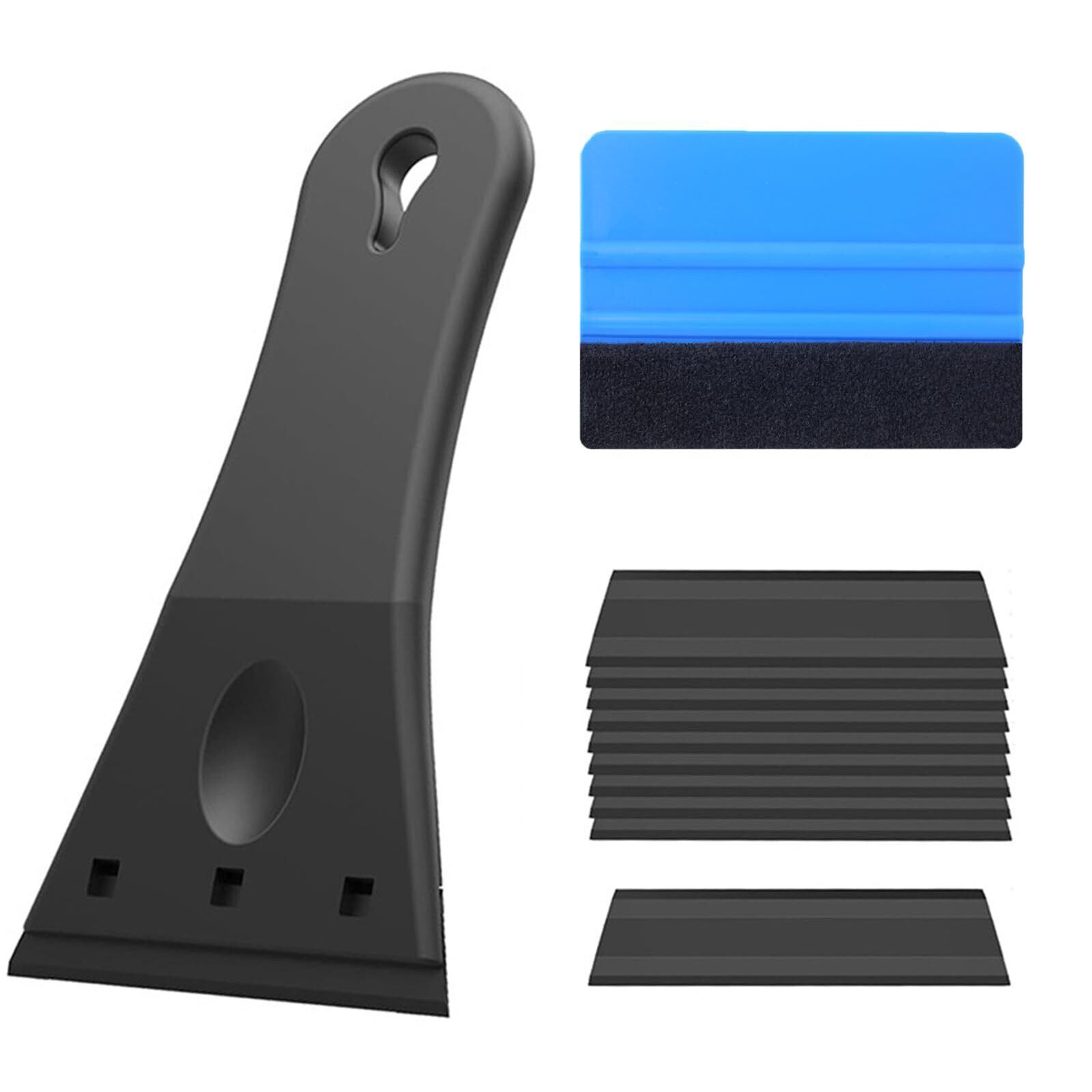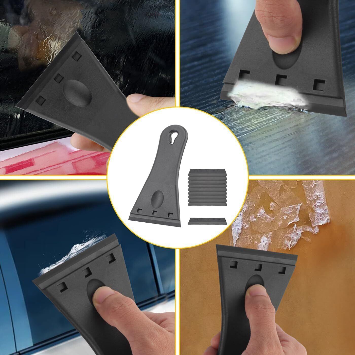 Kuhhgui スクレイパー シール剥がし ヘラ 掃除 ガラススクレーパー ポケットスクレーパー 安全スクレーパー ガラス汚れ落とし ガラス掃除壁面の付着物のかき落とし(プラスチックブレード10個) ステッカー/シール/ラベル/接着剤剥がし (X)