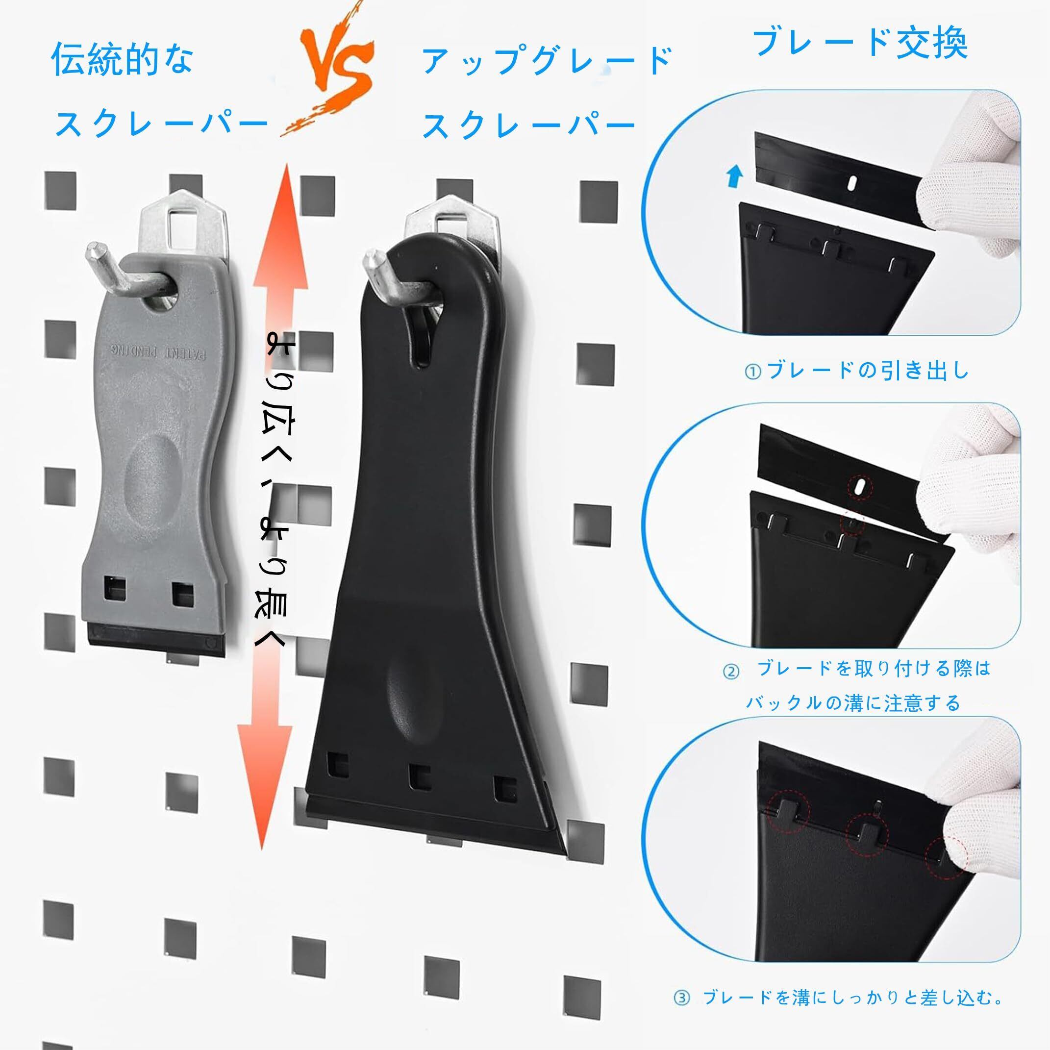 機能パワフル:キッチンコンロのコゲ落とし、車や窓、風呂場のガラスの水垢落とし、強力にはり付いたシール剥がし、水槽の苔、スキー・スノーボードの板汚れ、ステッカー剥がし、タイルや墓石などの汚れ、など非常に頑固で強力な汚れを、傷をつけることなく綺麗に取り除くことができる、万能スクレーパーです。