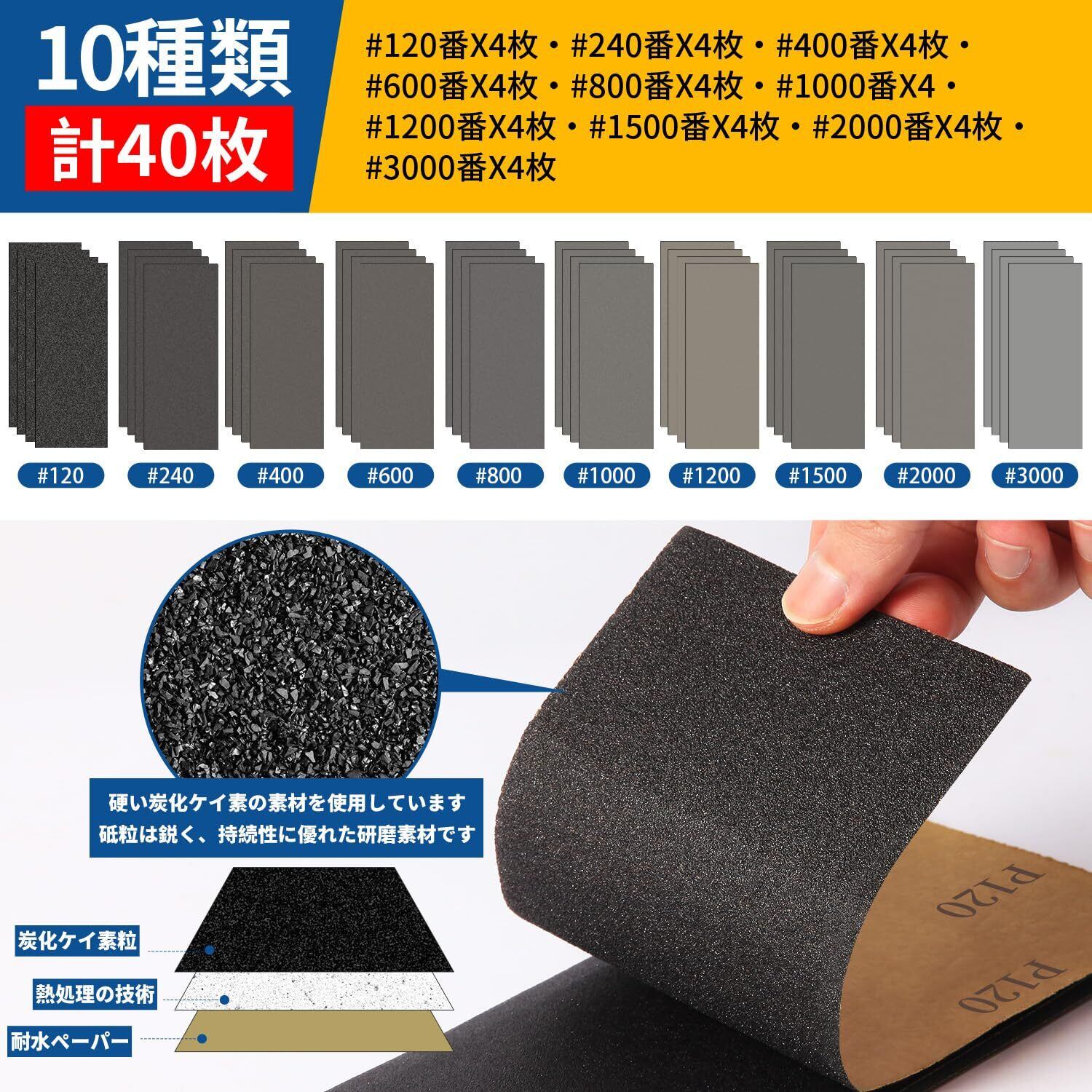MORLARCO 紙やすり 40枚10種類 120~3000番 耐水ペーパー セット 230×93mm サンドペーパー (120 240 400 600 800 1000 1200 1500 2000 3000 各4枚入り) 紙ヤスリ 耐水ヤスリ ヘッドライト磨き 金属 木工 DIY作業に キッチンの掃に | KSショップ