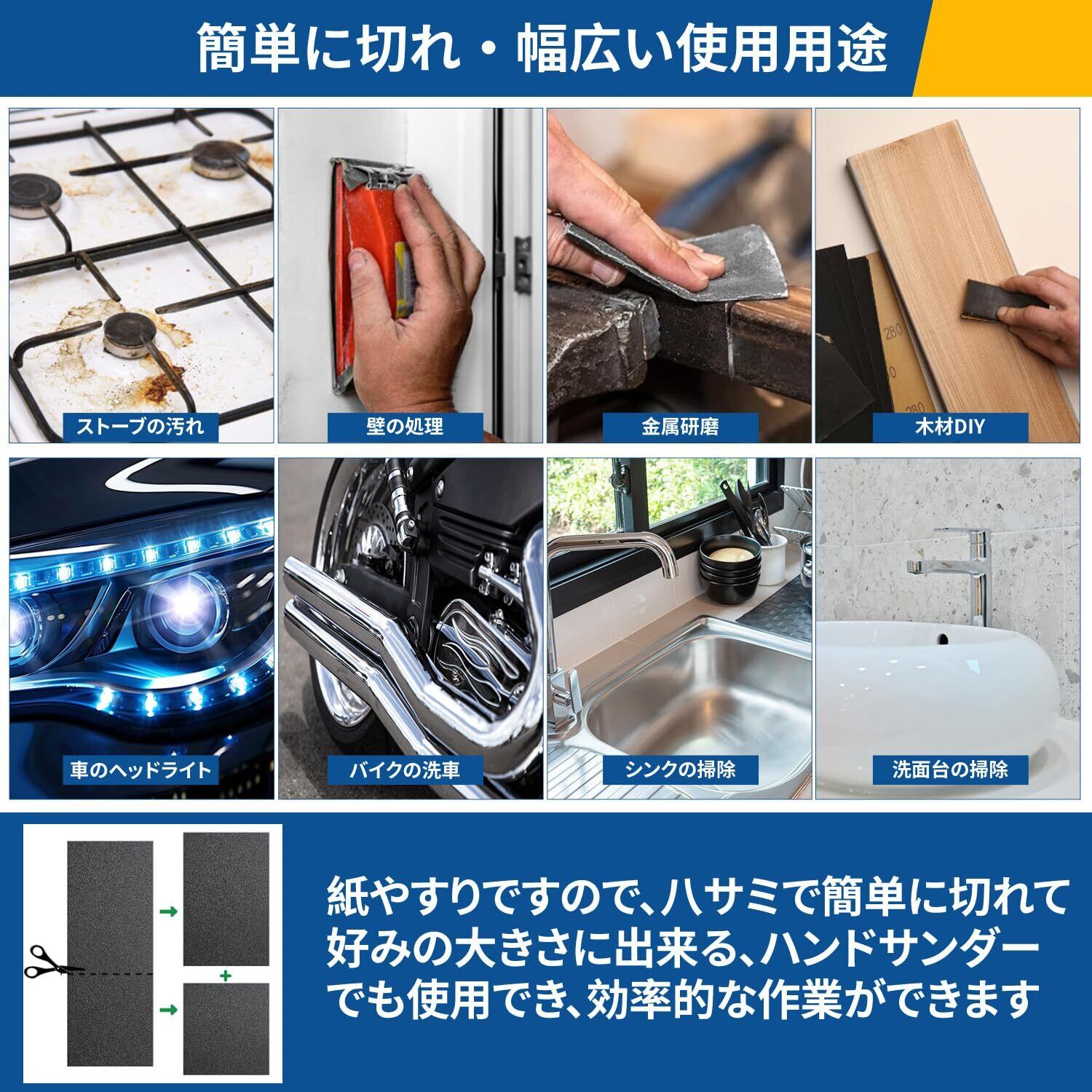 【幅広い使用用途】耐水ヤスリは、ヘッドライト磨き、板金の塗装、シンクの研磨、陶器・ガラス・木材・金属板の加工、木製家具の表面処理、サビ落としなど、多様な用途にご利用いただけます