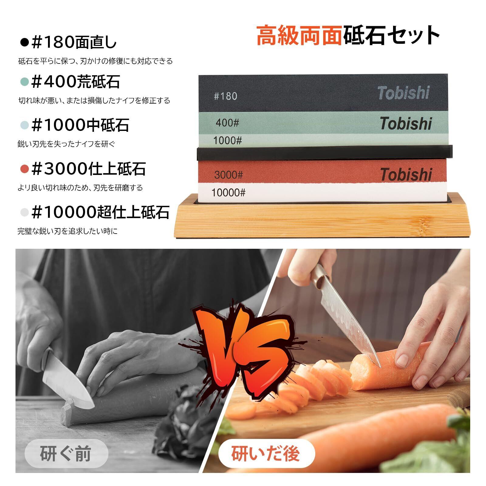 【お得砥石セット】この砥石セットは、400 1000 3000 10000両面砥石、面直し用砥石、滑り止めシリコーンマットX2、滑りにくい竹製ベース、包丁とぎホルダー補助具付き。別々購入するより安い、お得です。