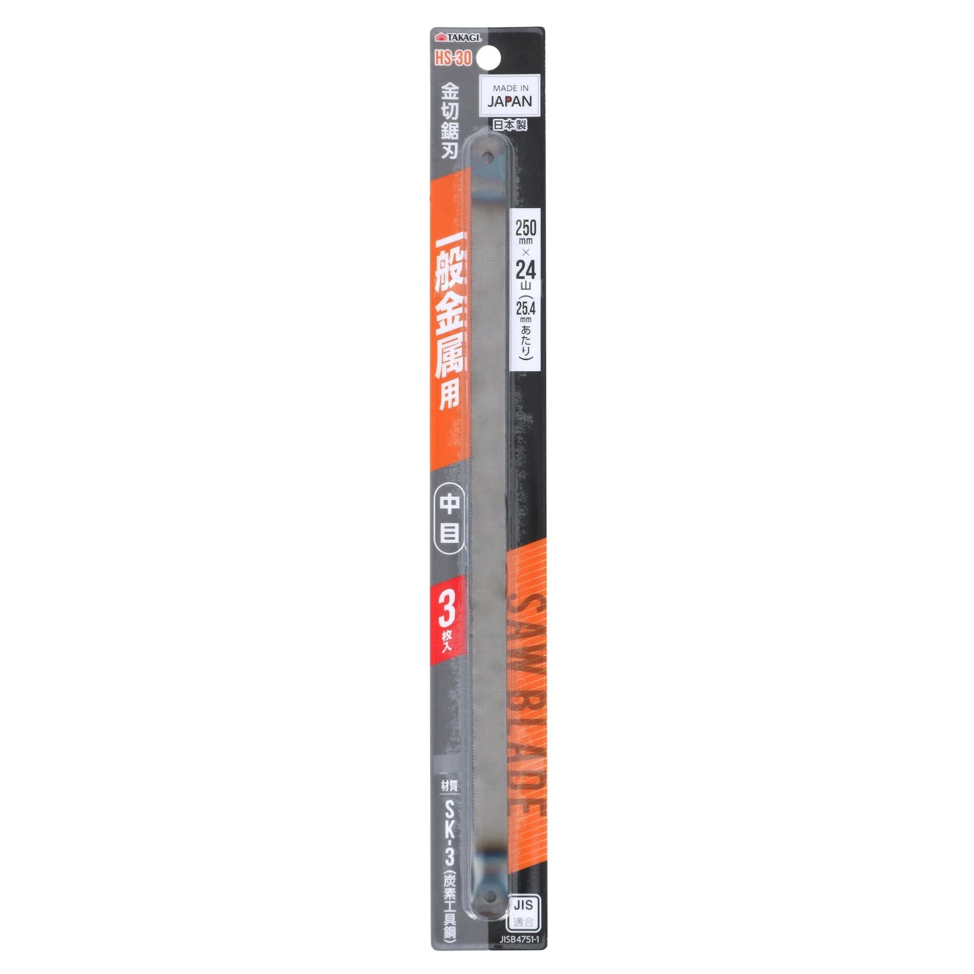 髙儀(Takagi) TAKAGI 金切鋸刃 一般金属用 中目 250mm 3枚入 HS-30 日本製 JIS適合 24山 金属 替刃