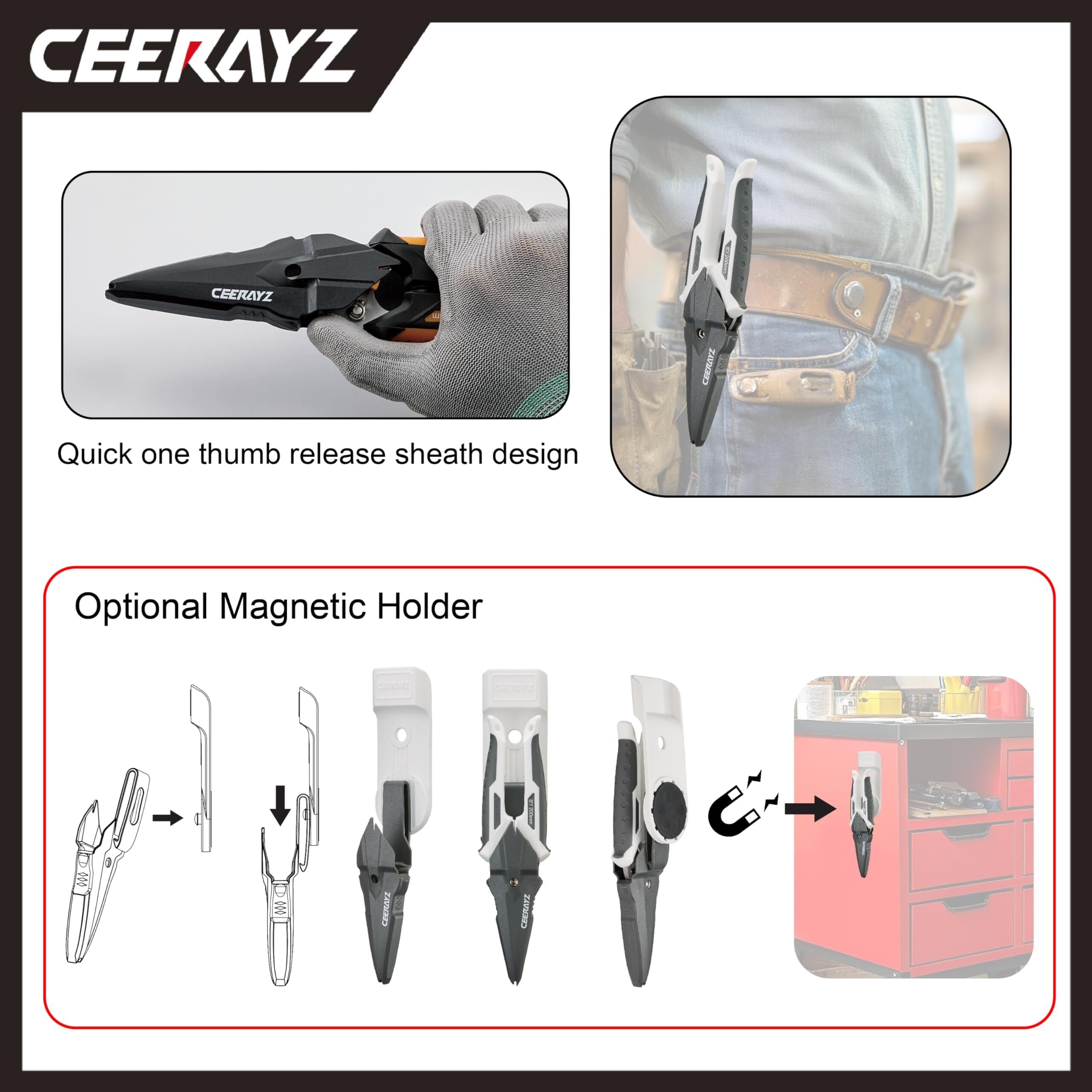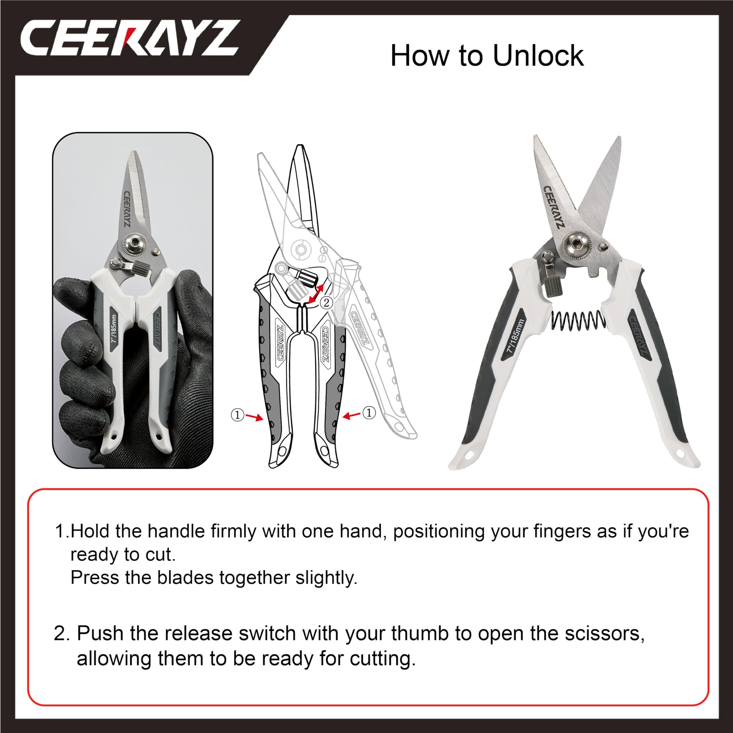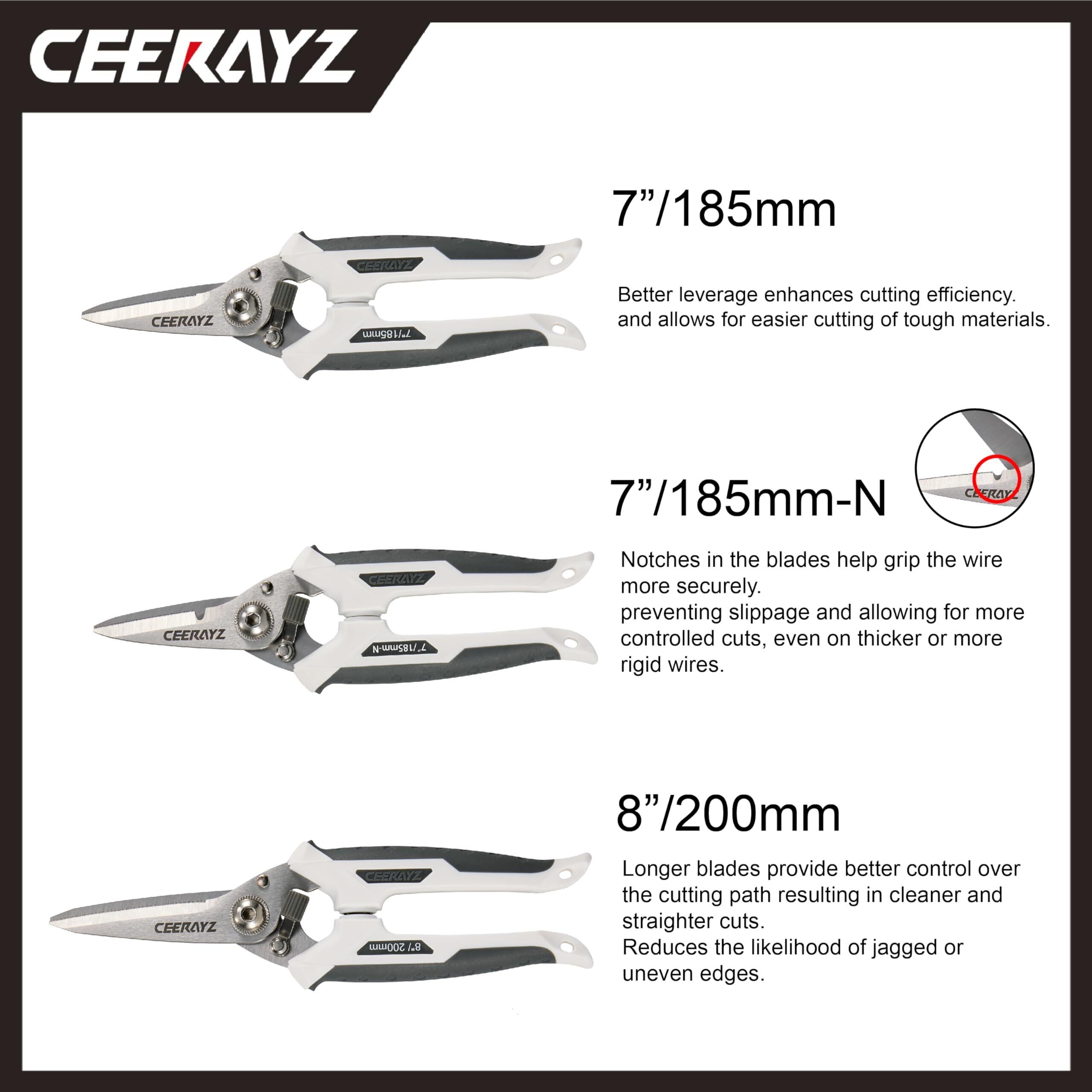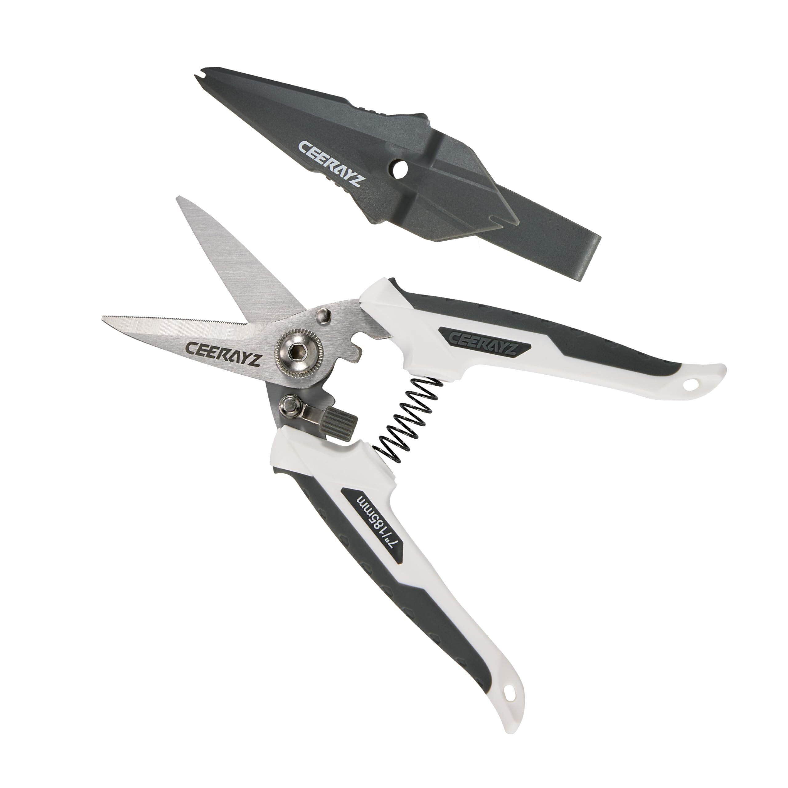 CEERAYZ ハサミ 185mm 多目的重作業用 420日本製ステンレス鋼採用 工業用ハサミ 万能ハサミ 金属加工 剪定 ガーデニング用 剪定用 保護シース付 - ホワイトグレー