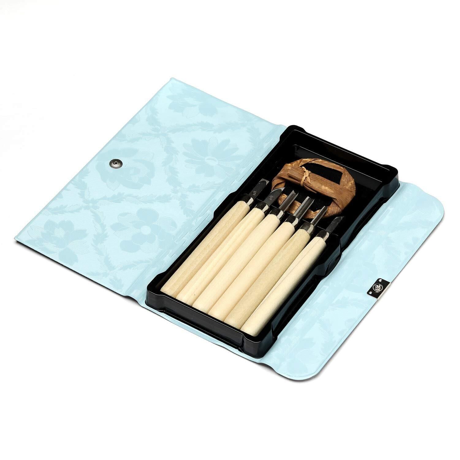義春刃物 マルイチ 彫刻刀 レザーケース入 6本組 S-6