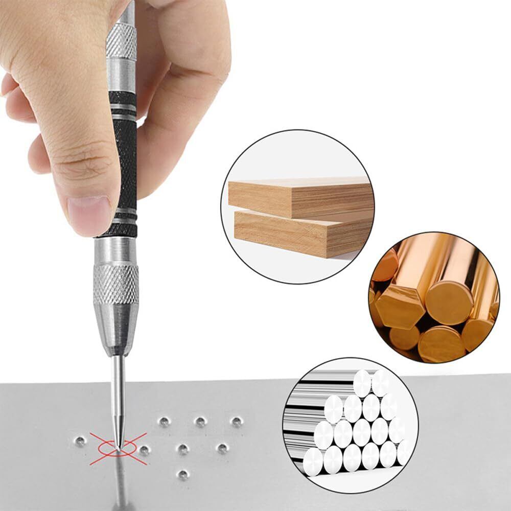 【幅広い用途】自動センターホールパンチは、木材、金属、ガラス、プラスチック、革、壁面などのマーキング、パンチング、刺し傷、スクライビングに最適です。材料のマーク、自動車の緊急用具、代替緊急用ハンマー、および鉄板の位置決め、木材の位置決め、壁の位置決めなど、さまざまな作業に適しています。