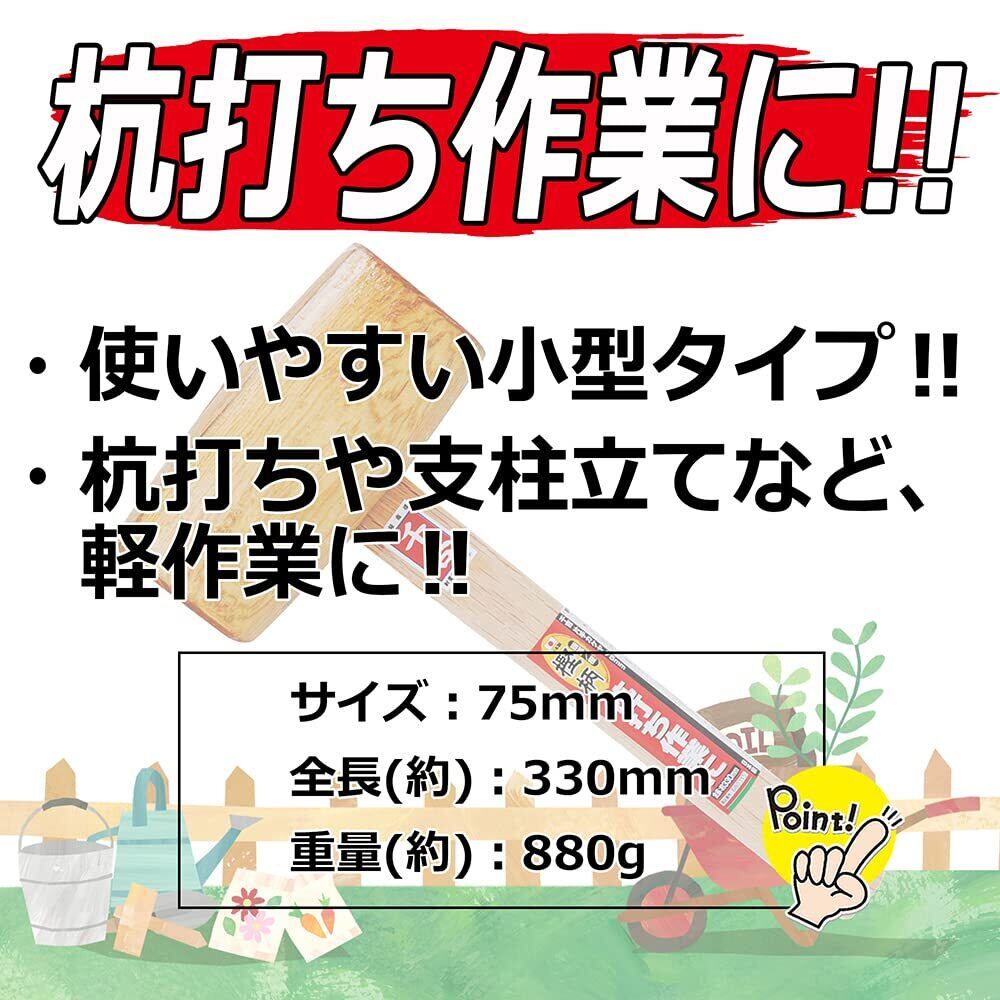 千吉 掛矢 片手カケヤ 頭径75mm 杭打ち作業用 小型タイプ 奥行7×高さ33×幅15.5cm