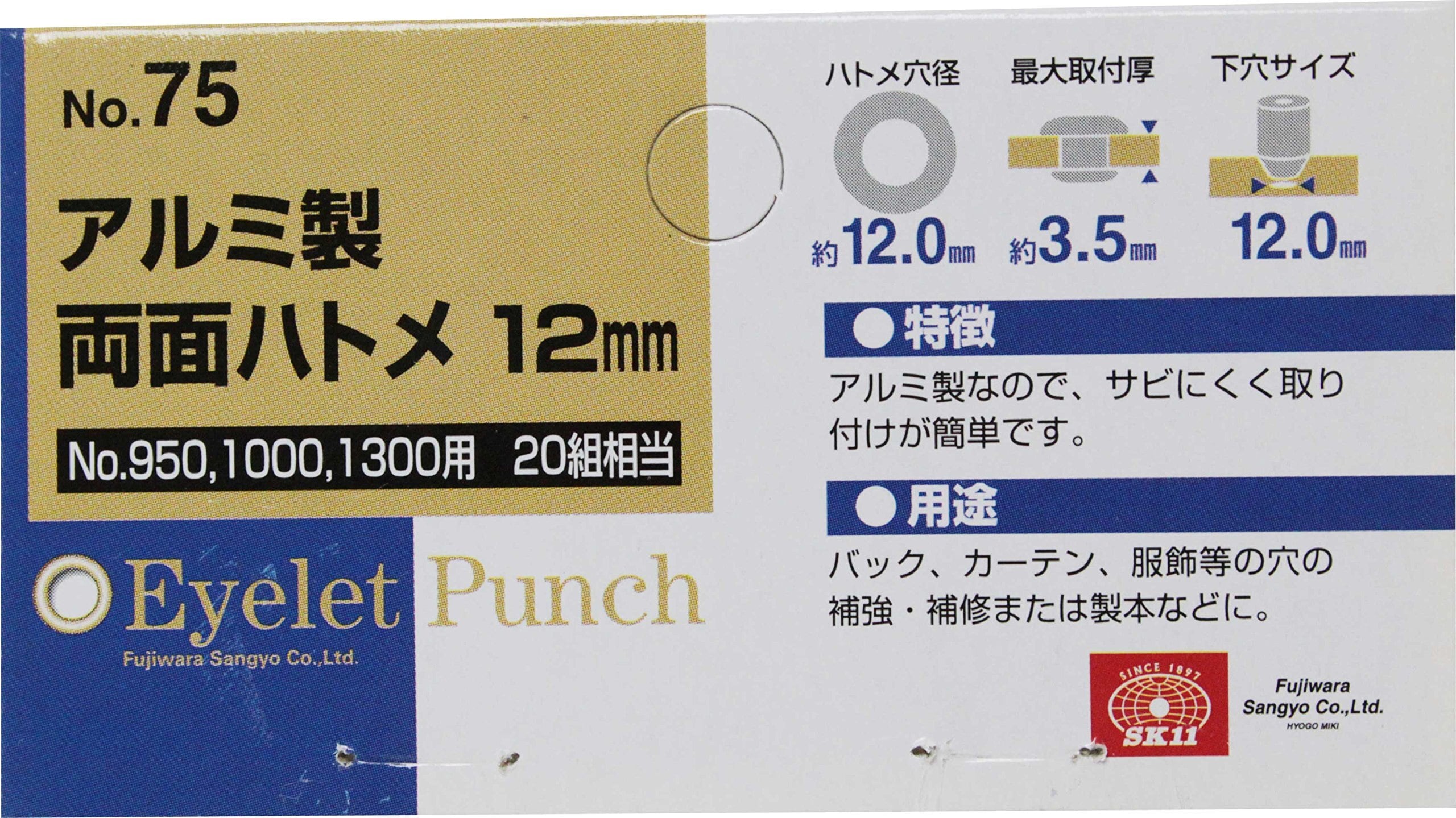 SK11(エスケー11) 両面ハトメの玉 20組 ハトメ穴径約12.0mm 本体950,1000,1300用 No.75