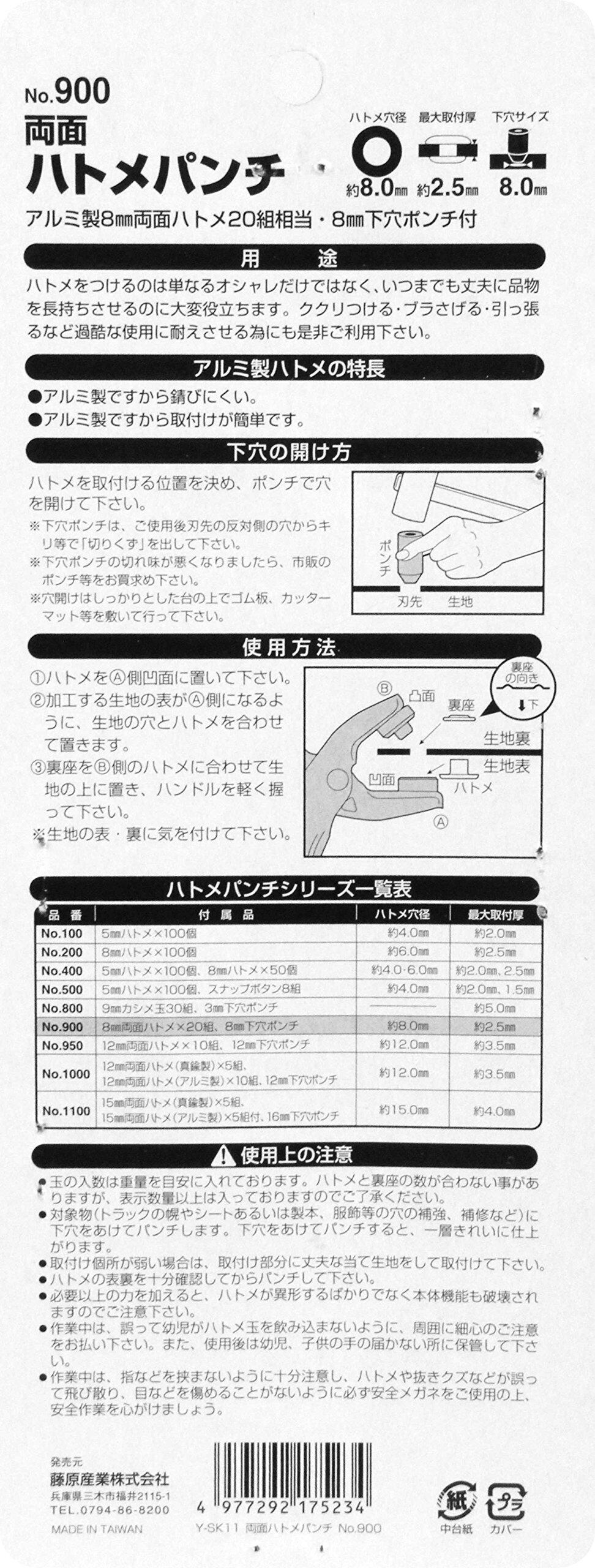 SK11(エスケー11) 両面ハトメパンチ ハトメ穴径8.0mm No.900