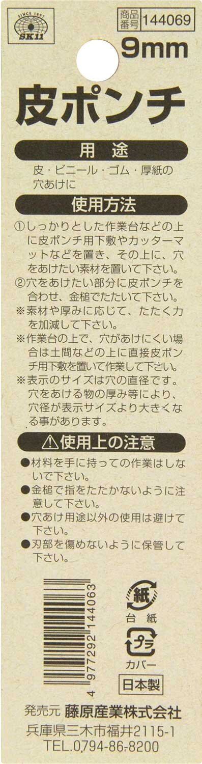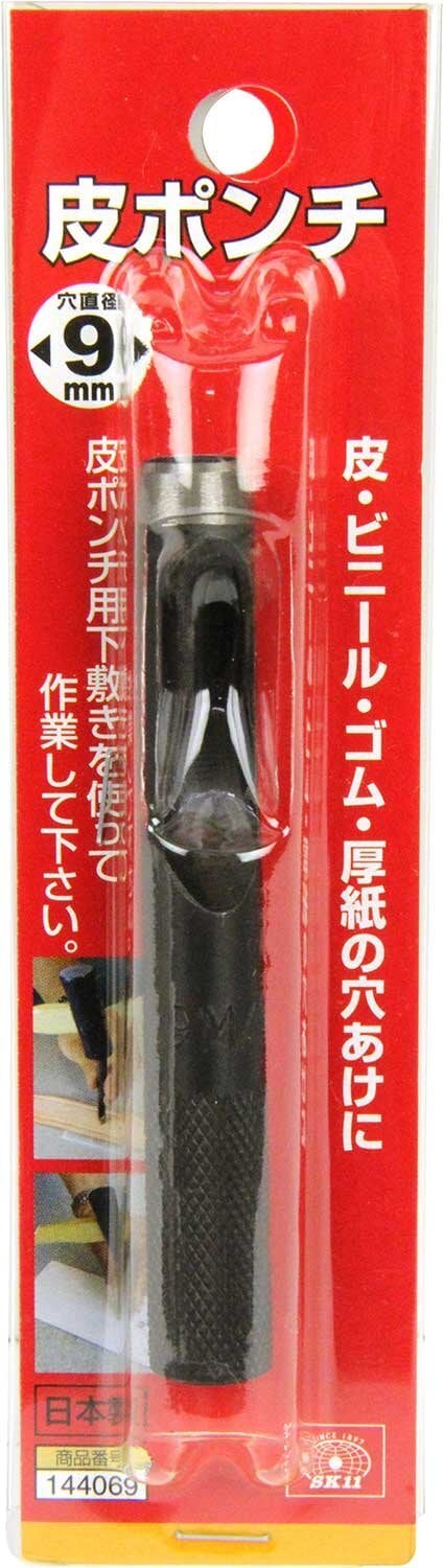 SK11(エスケー11) 皮ポンチ 穴直径9mm 皮 ビニール ゴム 厚紙の丸穴あけ