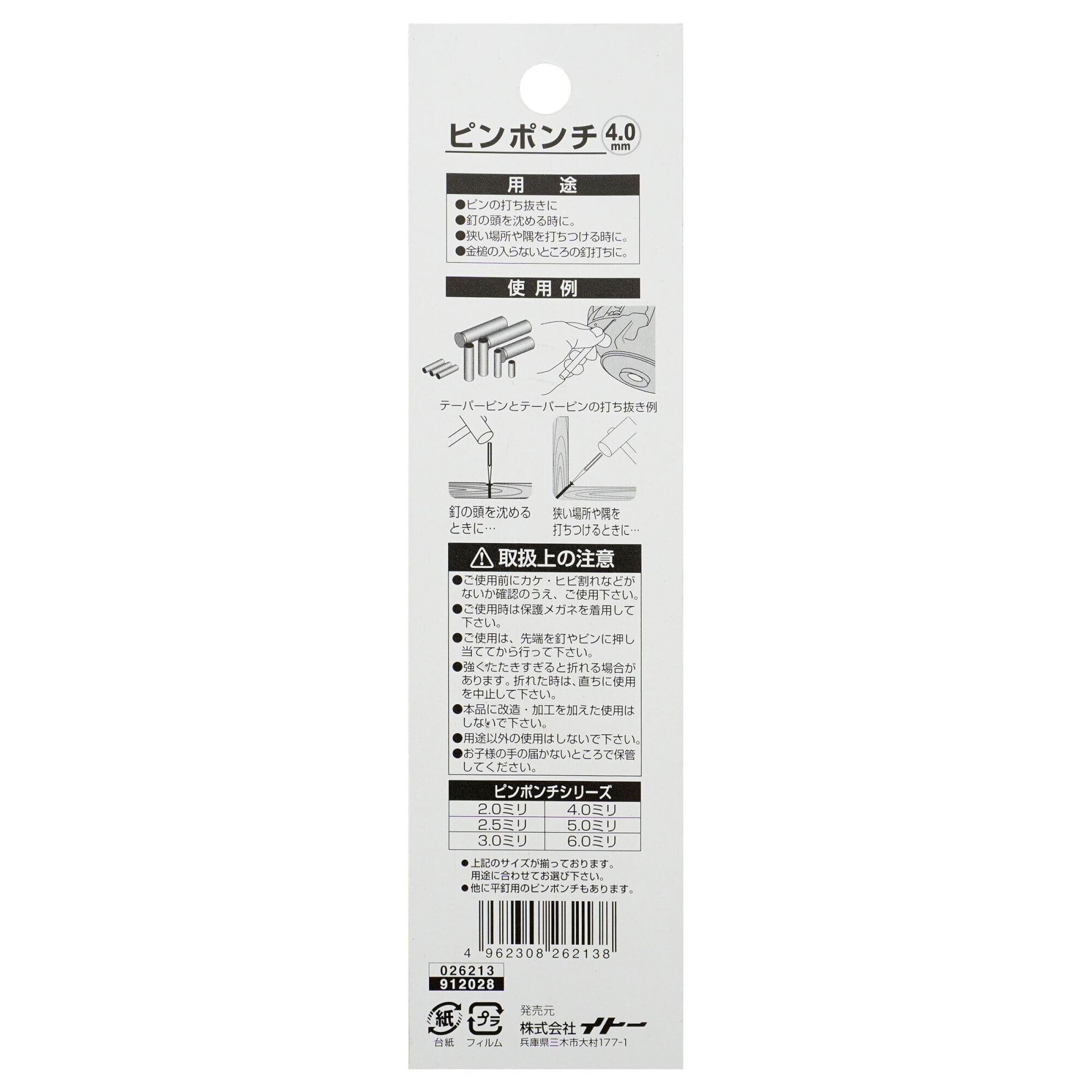 テーパーピンの打ち抜きや隅釘の打ち込みや釘の頭を沈めるときに・・・