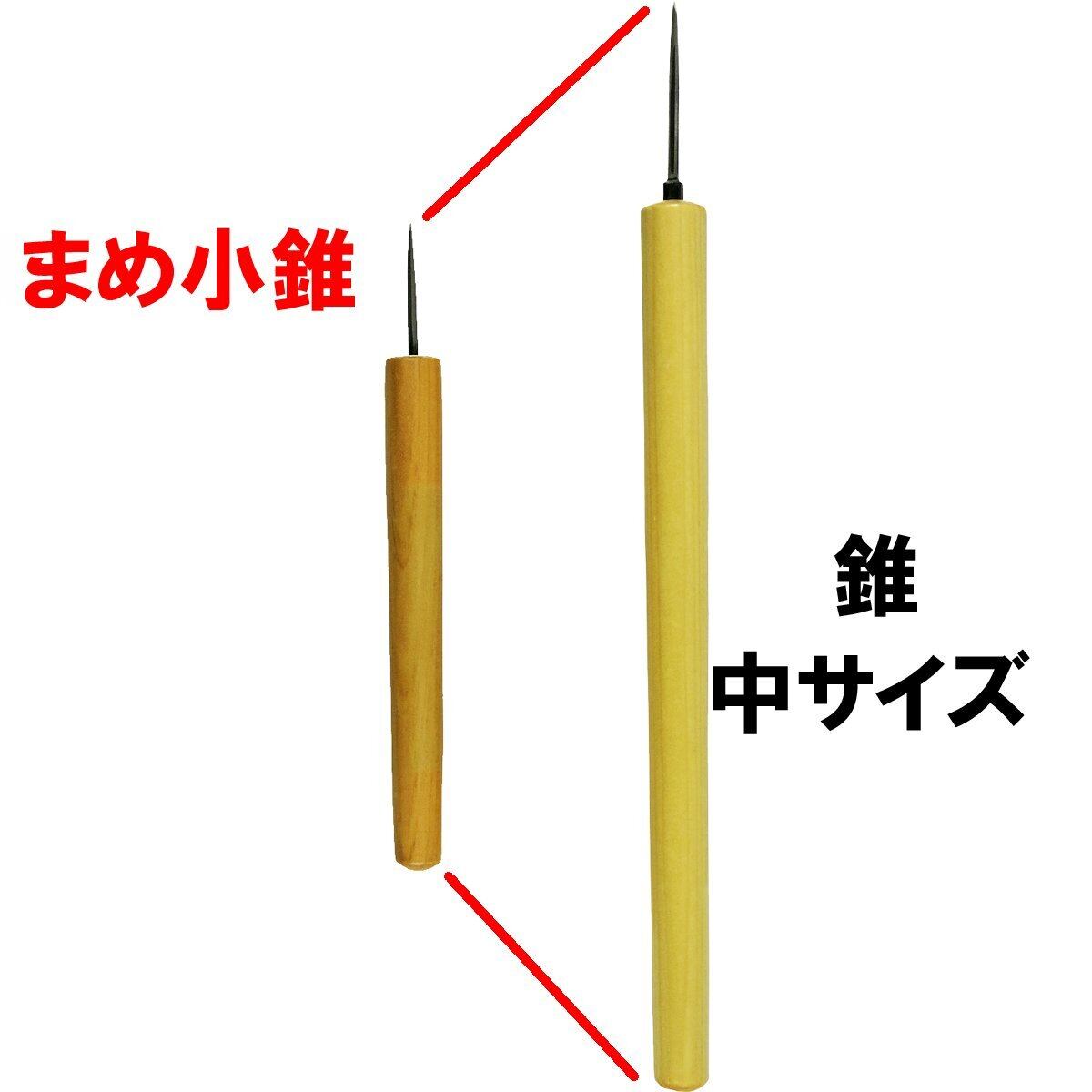 先端の形状は四角錐で鋭い円錐形の穴があけられ、四ツ目錐とも呼ばれます。