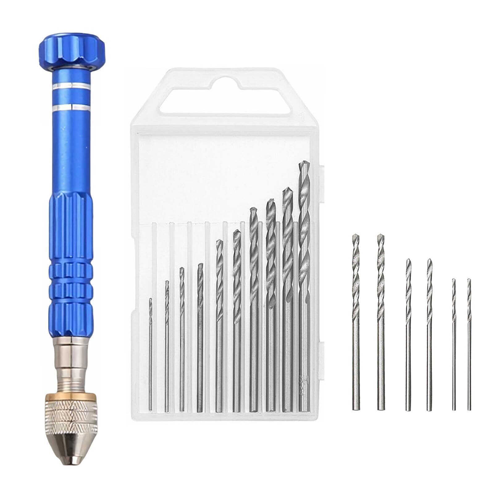 LIANHATA ピンバイス ハンドドリル 17本 穴あけツール プラモデル工具 精密 小型 手動ドリル 騒音なし 穴あけ 収納ケース付き 手芸 DIY工具 (ブルー)