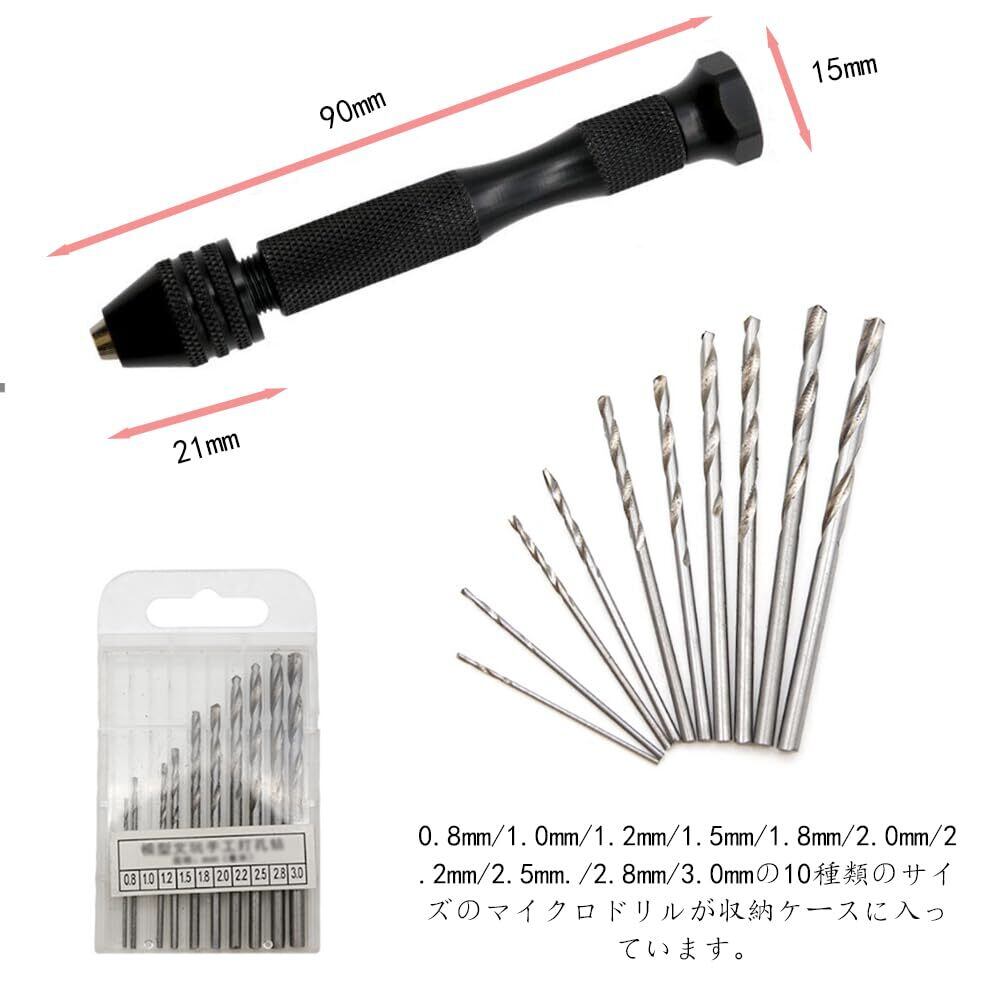 CHENLONB ハンドドリル ピンバイス 小型 穴あけツール 電源不要 手動ドリル DIYツール ドリル10本付き 0.8mm-3mm 収納ケース付き