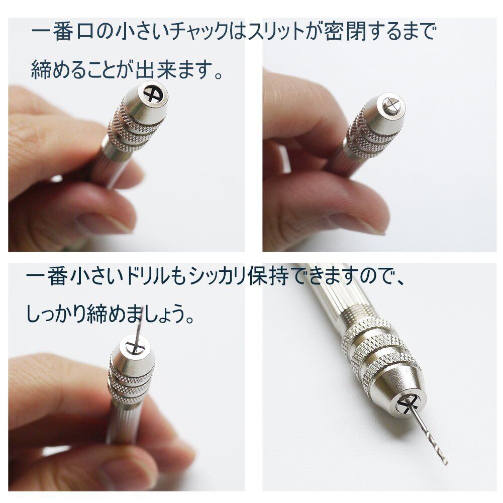 付け替え可能なピンバイス レジン穴あけ用 ドリルセット です。(レジン(透明樹脂)で作った作品に穴をあけたり、基盤製作やプラモデル、ビーズ細工などのクラフト作業などでも使えます。)