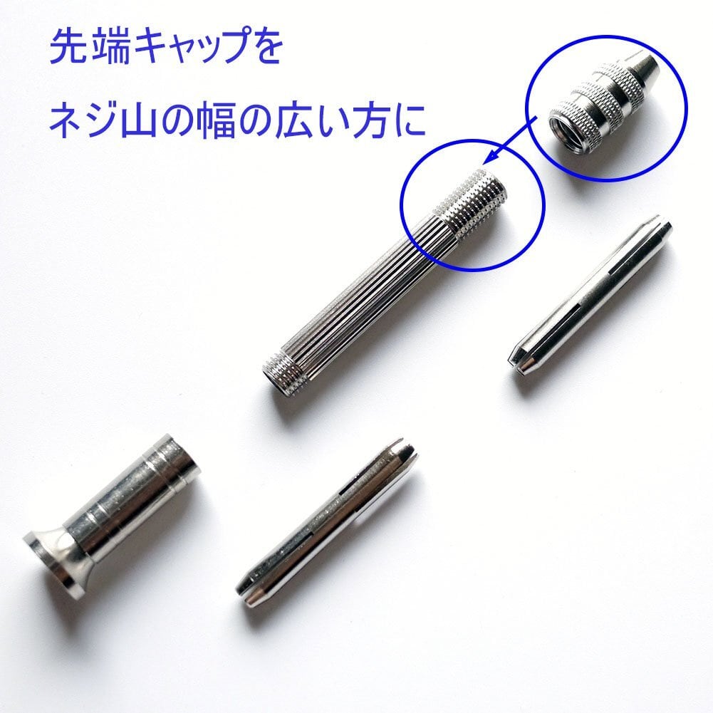 十字スリット中心にドリルを挿入し、キャップを占める方向に回して取り付けます。