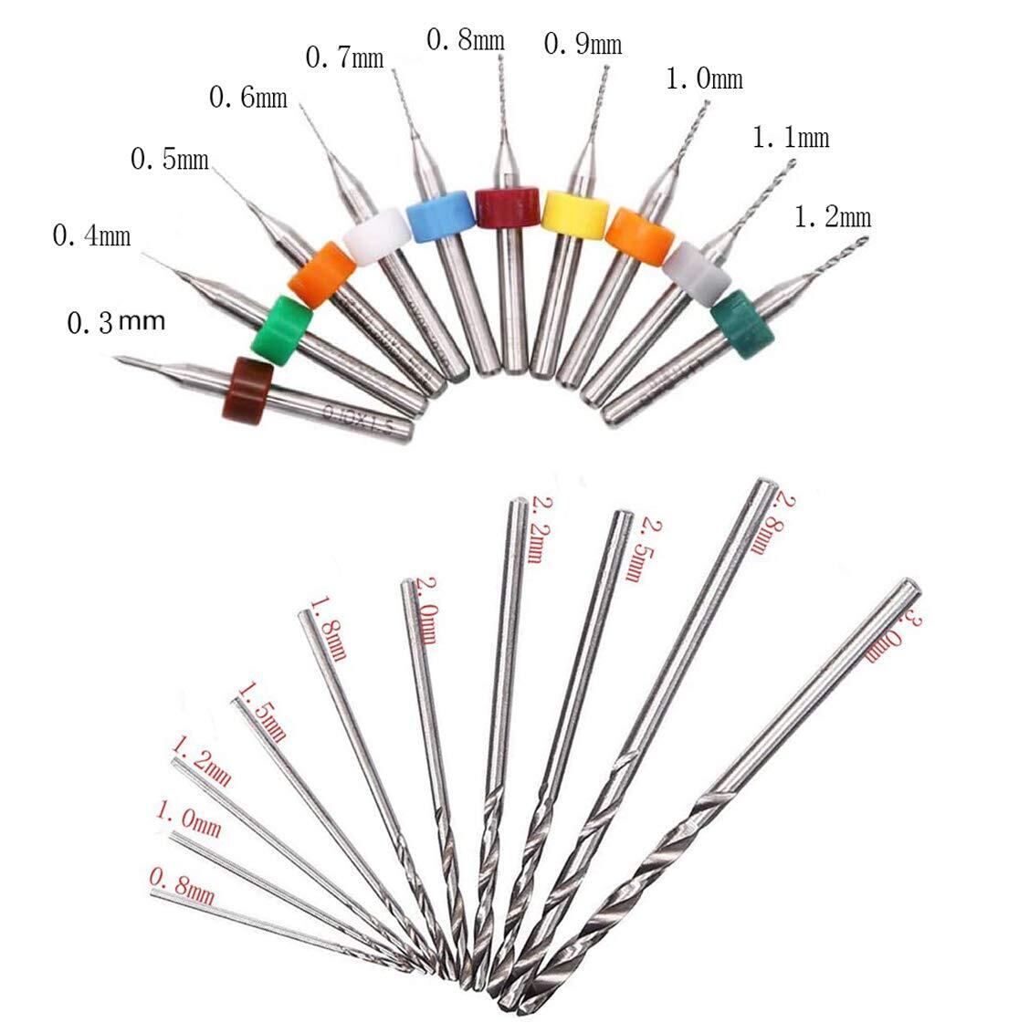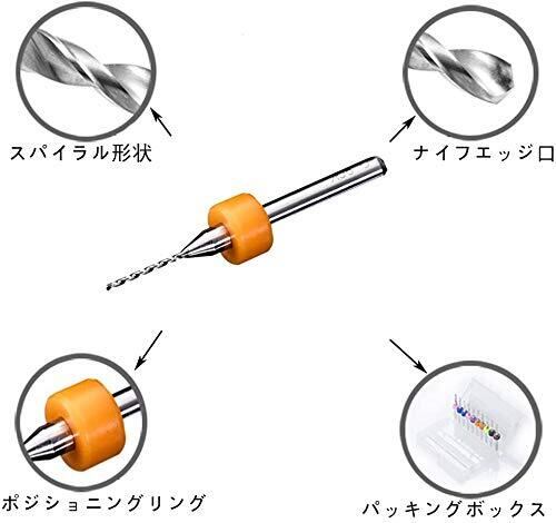 パッケージは以下を含みます:0.8mm/ 1.0mm/ 1.2mm/ 1.5mm/ 1.8mm/ 2.0mm/ 2.2mm/ 2.5mm/ 2.8mm/ 3.0mm各1本入り、ピンバイス1本、 (0.3/0.4/0.5/0.6/0.7/0.8/0.9/1.0/1.1/1.2mm)PCB彫刻ドリル各1本入り