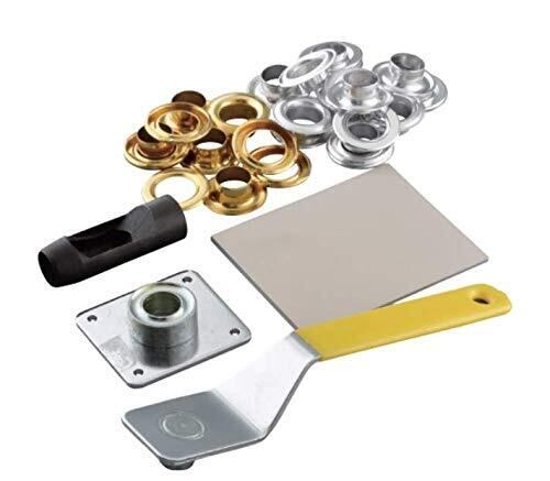 内容:穴あけポンチ、ポンチ用下敷き、アルミハトメ5組、真鍮ハトメ5組