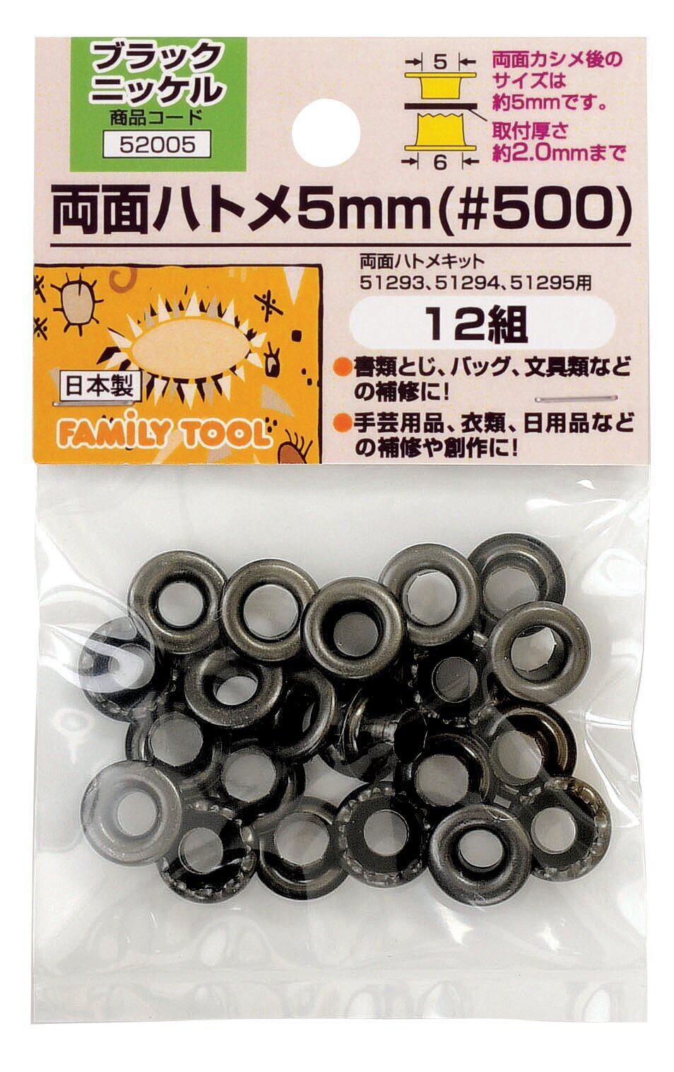 イチネンアクセス FAMILY TOOL(ファミリーツール) ハトメ 両面ハトメ 5mm(#500) ブラックニッケル 52005 12組 真鍮製