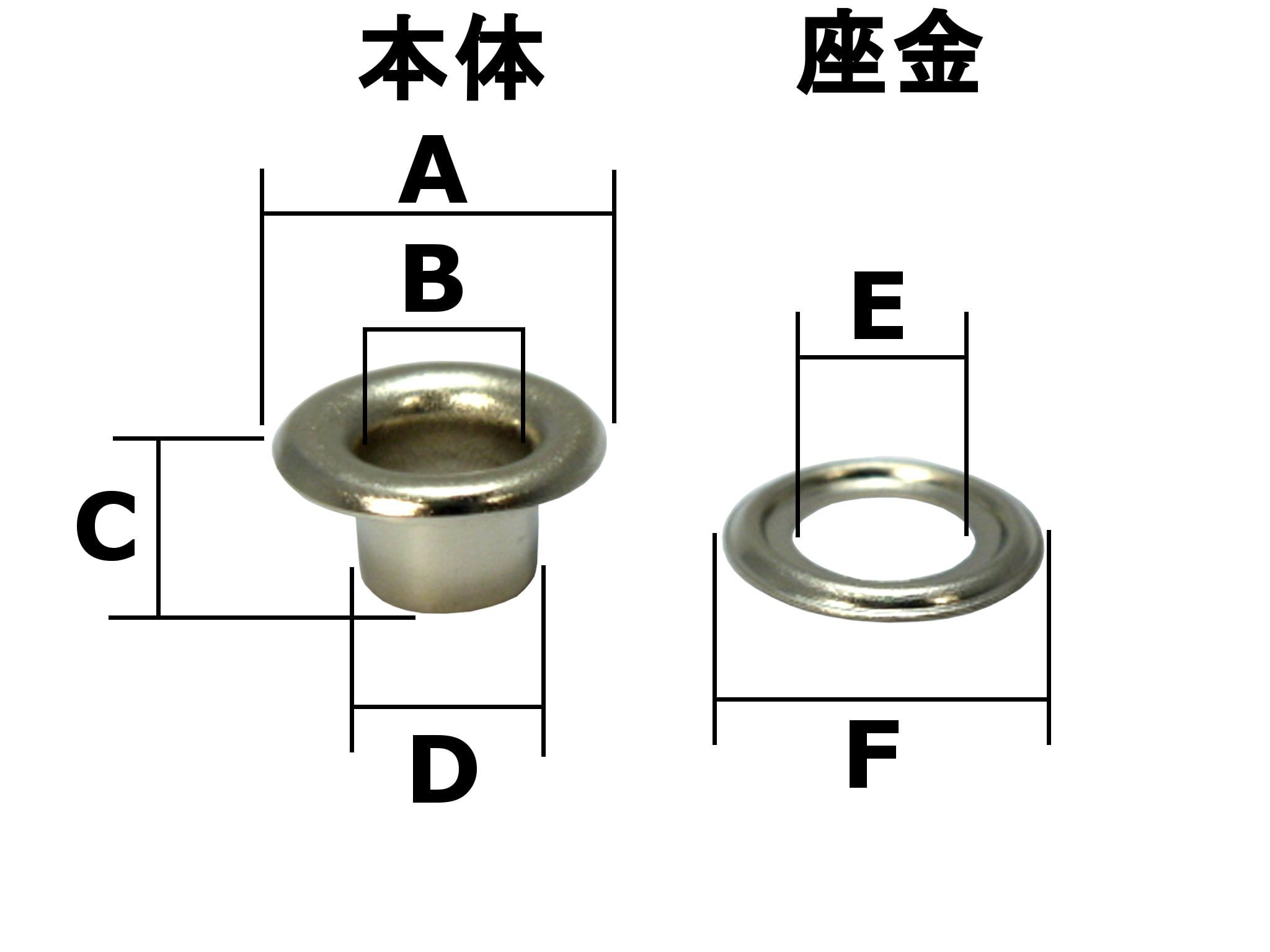 サイズ:A/約7.5mm、B/約3.7mm、C/約4.7mm、D/約4mm、E/約4mm、F/約7.8mm