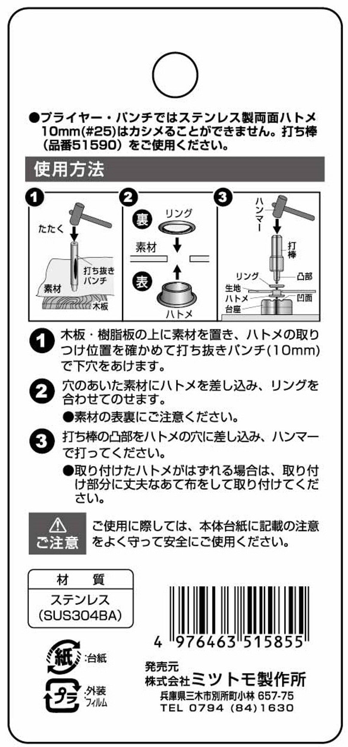 イチネンアクセス ツール事業部 イチネンアクセス FAMILY TOOL(ファミリーツール) 両面ハトメ ステン製 10mm×20組 51585