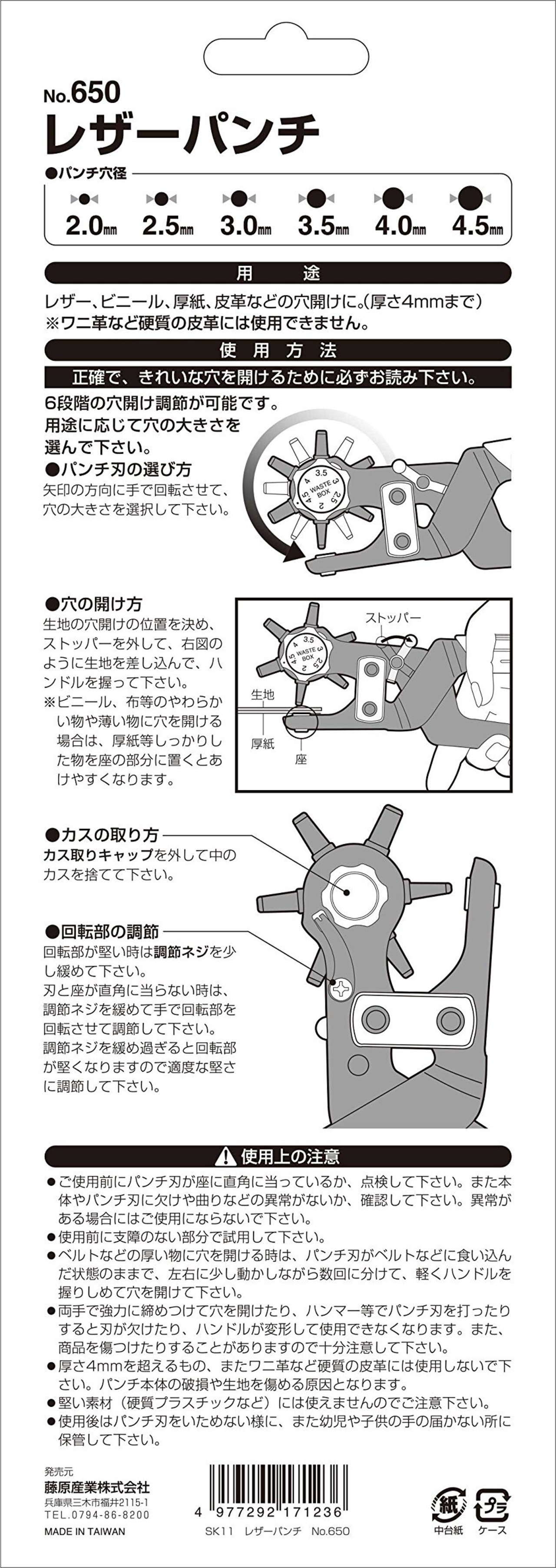 SK11(エスケー11) レザーパンチ パンチ穴径 2.0~4.5mm NO.650