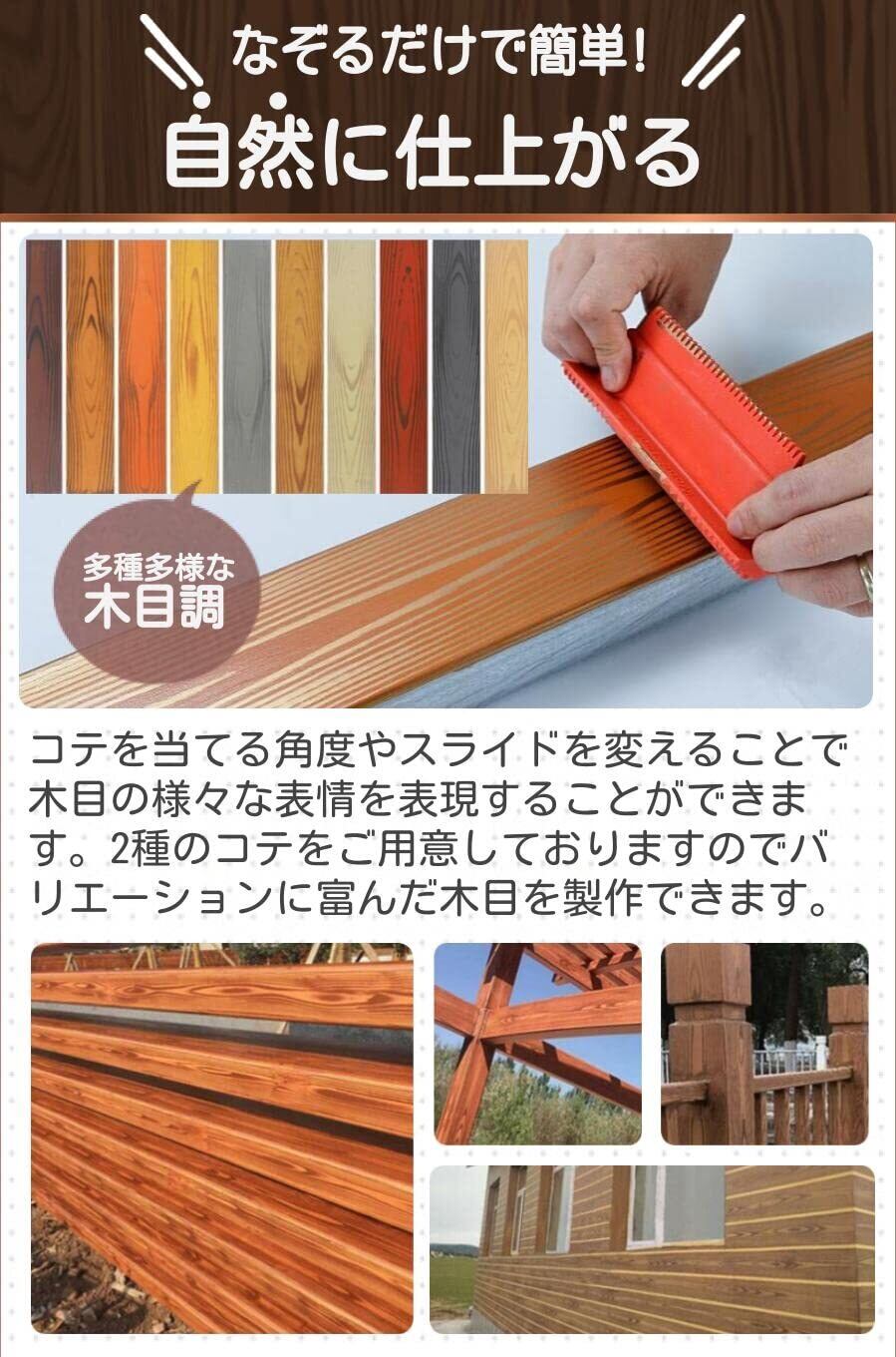【自然に仕上がる】なぞるだけで簡単!コテを当てる角度やスライドを変えることで木目の様々な表情を表現することができます。2種のコテをご用意しておりますのでバリエーションに富んだ木目を製作できます。