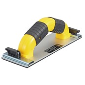 ・壁や床の内装下地仕上げ、板金・塗装の下地処理など用途に応じて研磨材料(サンドペーパー、布ヤスリ、のり付ヤスリなど)がセットでき、楽に速く研磨作業が行える