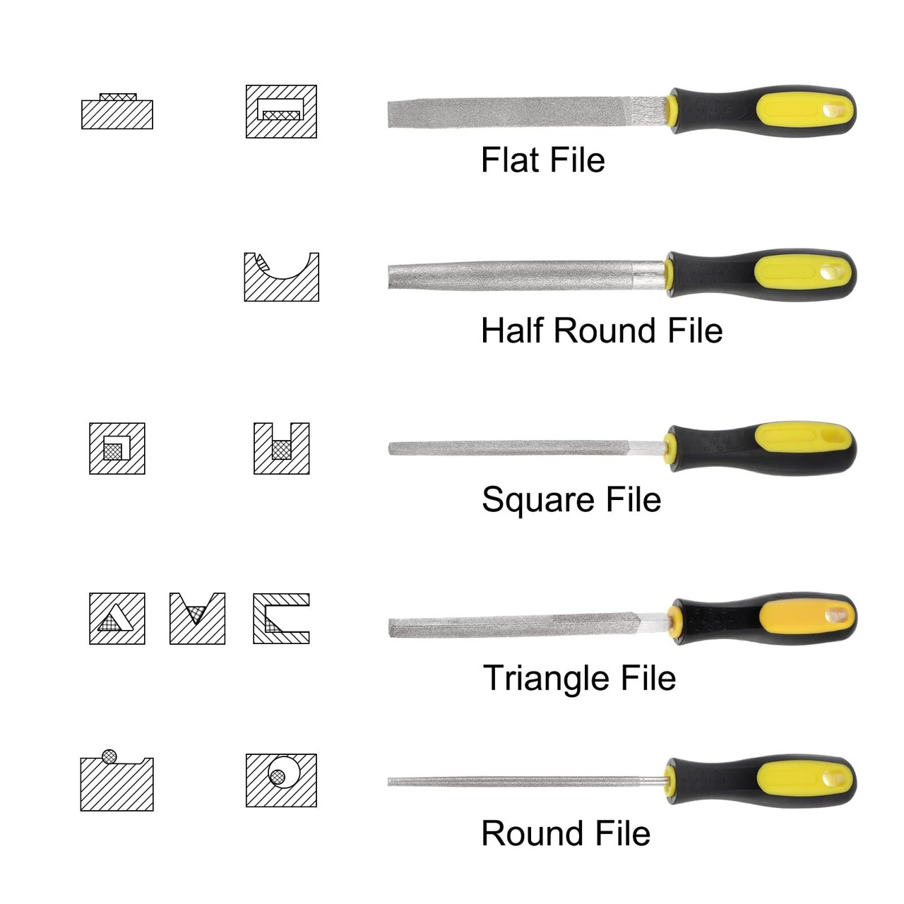 知らせ - 硬い金属には適していますが、アルミニウム、銅、金などの柔らかい金属には適しません。やすりをかけるときは、ワイヤーブラシを使用して、刃についた破片を取り除きます。