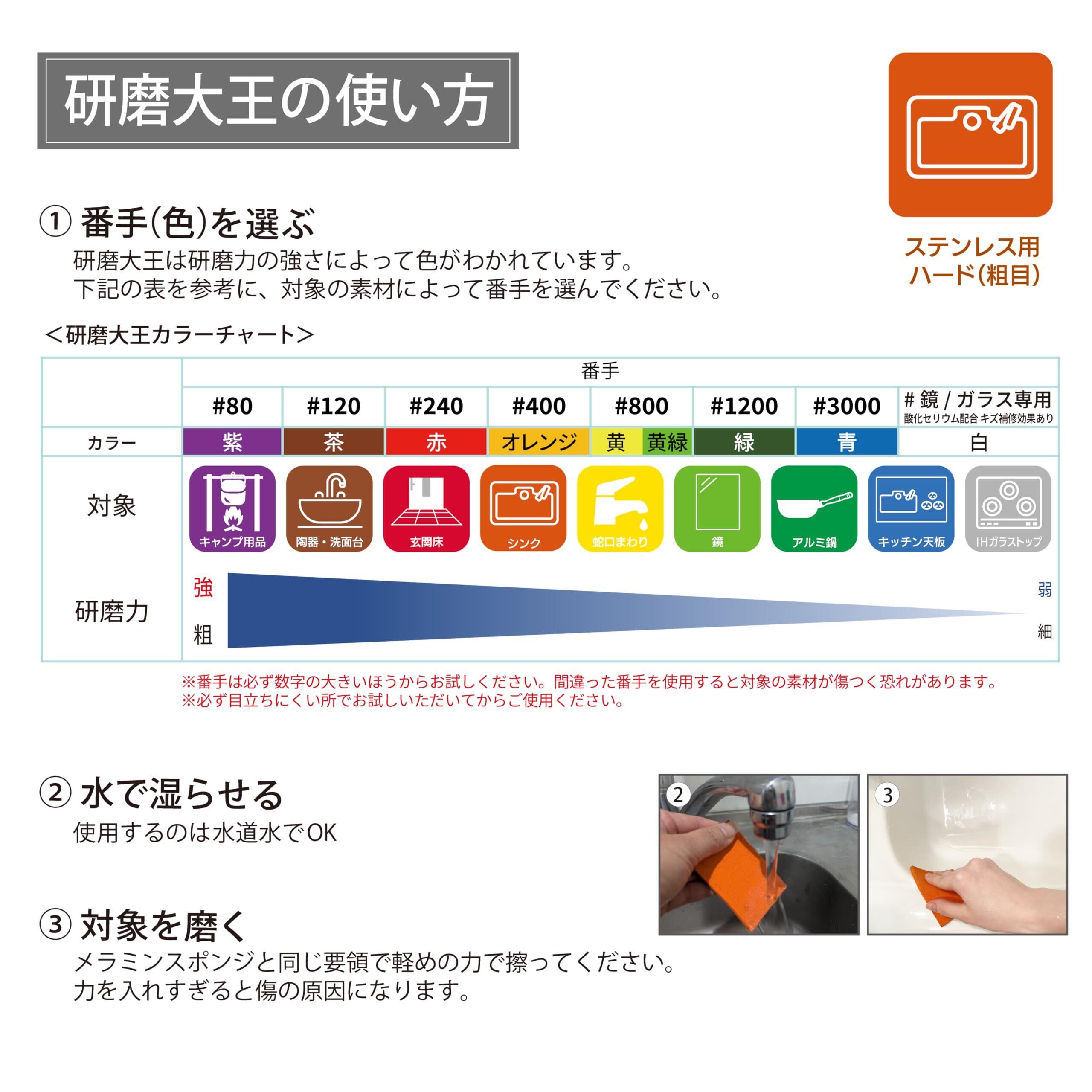【水だけで磨ける研磨スポンジ】研磨大王 手作業用シート ハーフサイズ(50×75×厚さ3㎜)|#400 ステンレス用粗目|シンクみがき・サビ・コゲ・汚れ取り